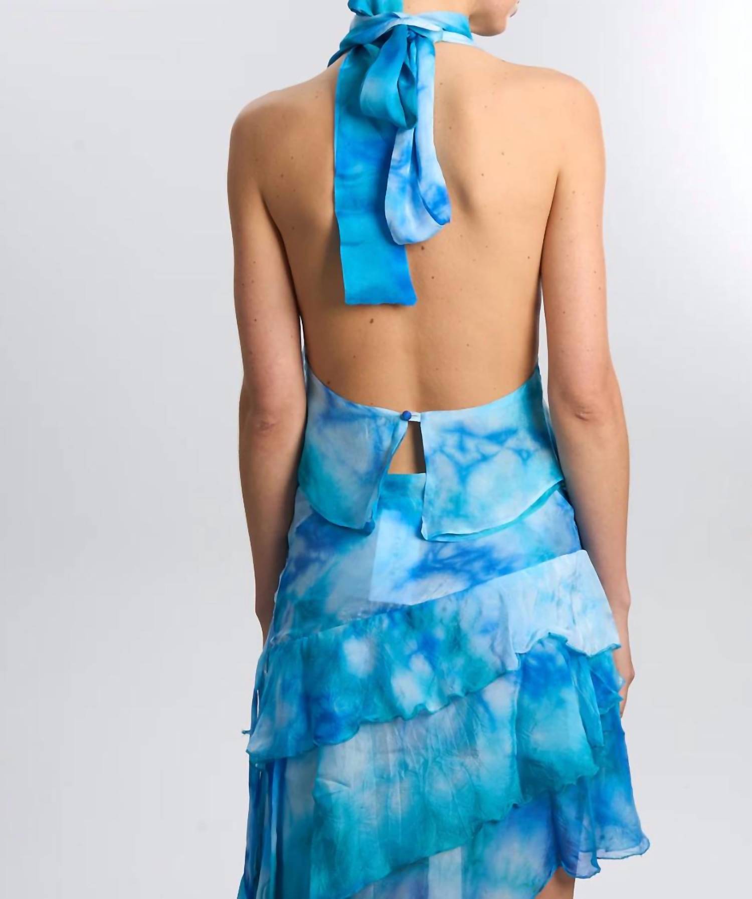 Show just the right amount of leg in this fit flattering mini. Unveil boho chic style with the Marco Asymmetric Skirt by Caro Luna, a must-have for spring holiday parties. Crafted in a luxurious tie-dye silk chiffon, this blue mini skirt embodies a blend of 60% viscose and 40% silk, offering both elegance and comfort. Made in Spain, it provides a perfect fit with size options covering hip measurements from 89 to 104 cm. Care instructions include washing at 30 degrees and avoiding bleach to maintain its exquisite texture.