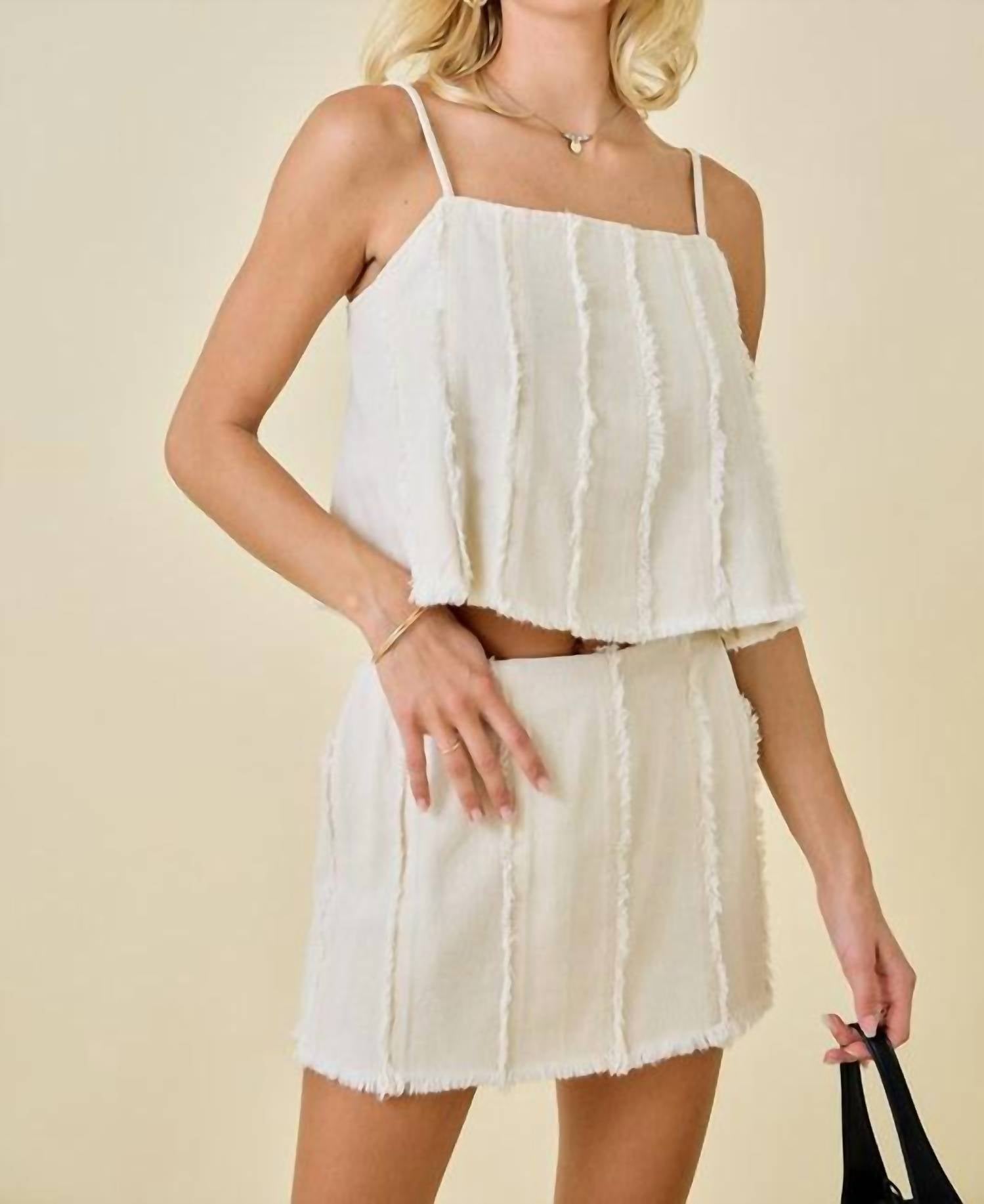 The perfect mini skirt does exist. Elevate your summer wardrobe with the Mini Skirt With Exposed Raw Edge Seams by Day + Moon. This textured mini skirt in a unique oatmeal shade offers a minimalist aesthetic perfect for vacation and Thanksgiving gatherings. Designed without pockets and featuring a raw edge seam, this skirt is ideal for fashion-forward women. Made for easy styling all season long, this piece hails from a brand celebrated for its refined simplicity.