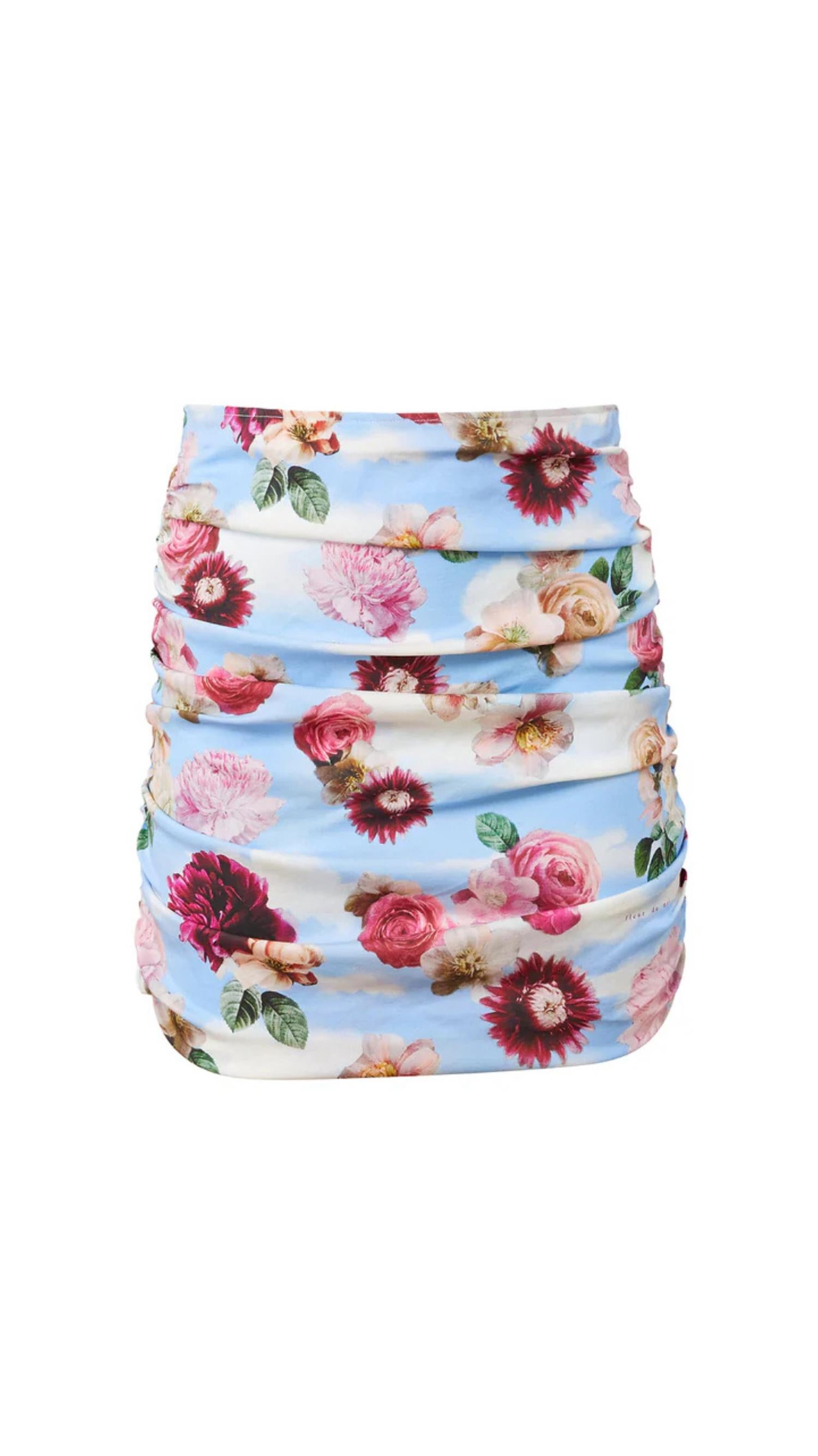 Embrace elegance with the Dreamy Floral Georgette Ruched Skirt by Fleur Du Mal, a striking mini skirt crafted for the ultimate feminine allure. This beautiful piece features a flattering ruched design and a playful ruffled hem in a silk georgette blend composed of 92% silk and 8% elastane, finished with a pull-on closure for ease. Perfect for spring occasions such as concerts and Easter celebrations, this floral patterned skirt epitomizes boho-chic style. Care: Dry clean only.