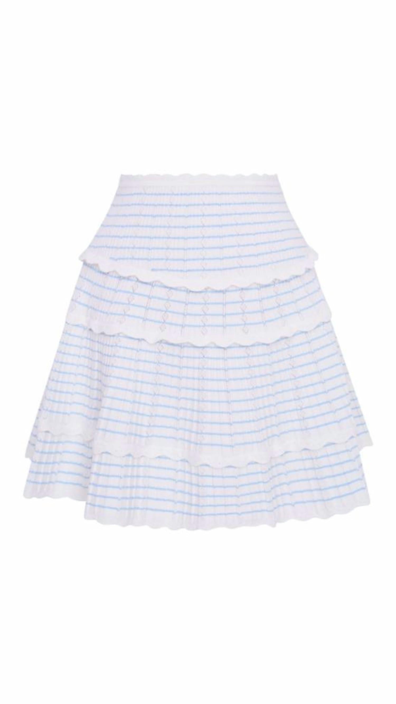 The perfect mini skirt does exist. The Colella Skirt by LoveShackFancy combines playful elegance with its charming Saylor Stripe design and mini length fit for women. Crafted in a soft and flexible blend, it features 73% Viscose, 17% Polyester, 6% Spandex, and 4% Metallique, ensuring a comfortable wear with a touch of shimmer. The pull-on closure adds convenience with a preppy flair, making it perfect for vacation or festive occasions. Care for this stylish piece with dry cleaning to maintain its vibrant look.
