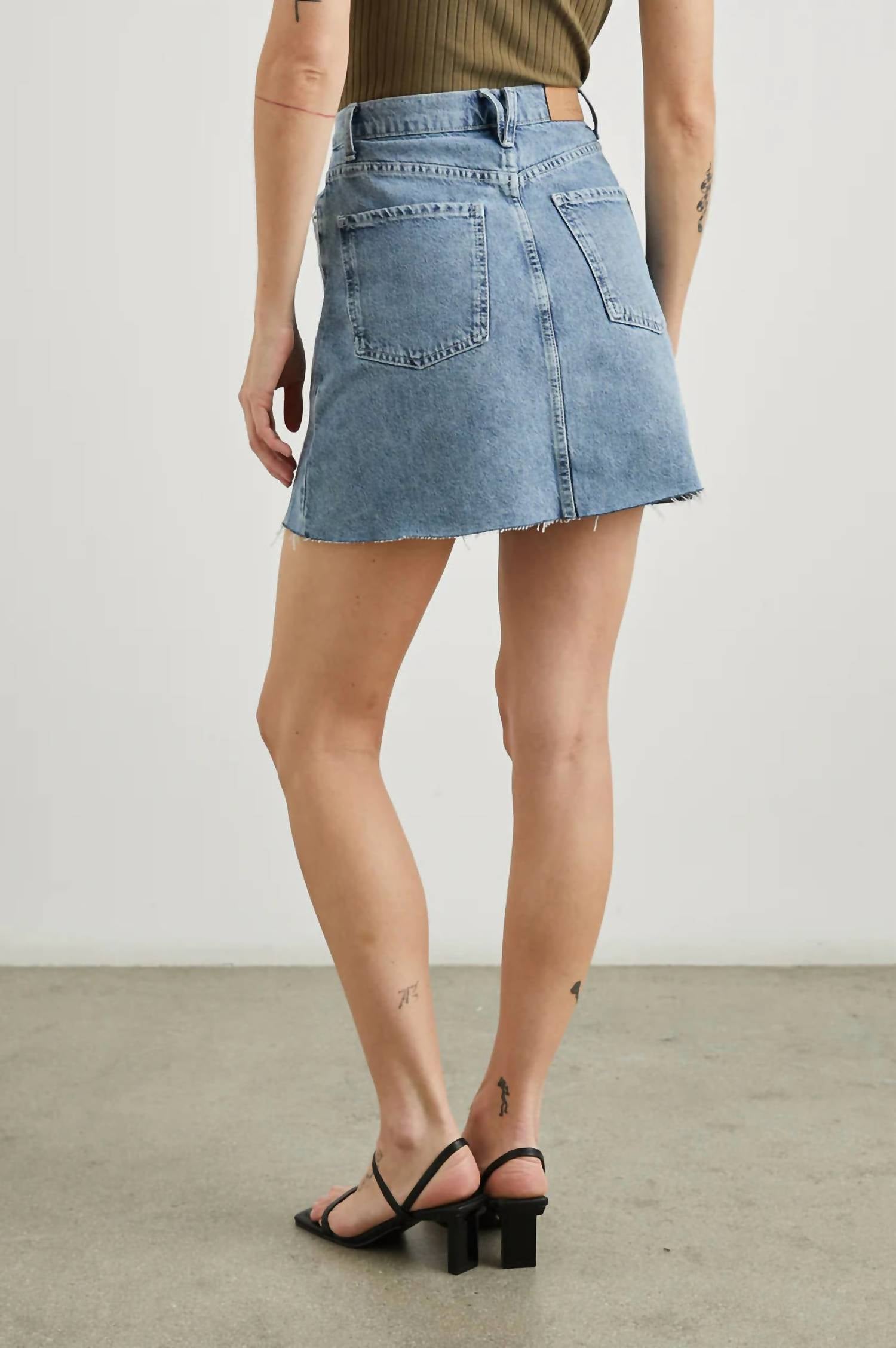 Meet the Rails Haze Brentwood Skirt, a spring-ready mini skirt perfect for travel and streetwear aficionados. Crafted from 80% cotton and 20% post-consumer recycled cotton, this stone blue piece features diagonal style lines and a convenient zip closure. Its solid pattern, travel-friendly design, and pockets make it an ideal choice for Easter and beyond. Care is a breeze with machine wash and tumble dry instructions.