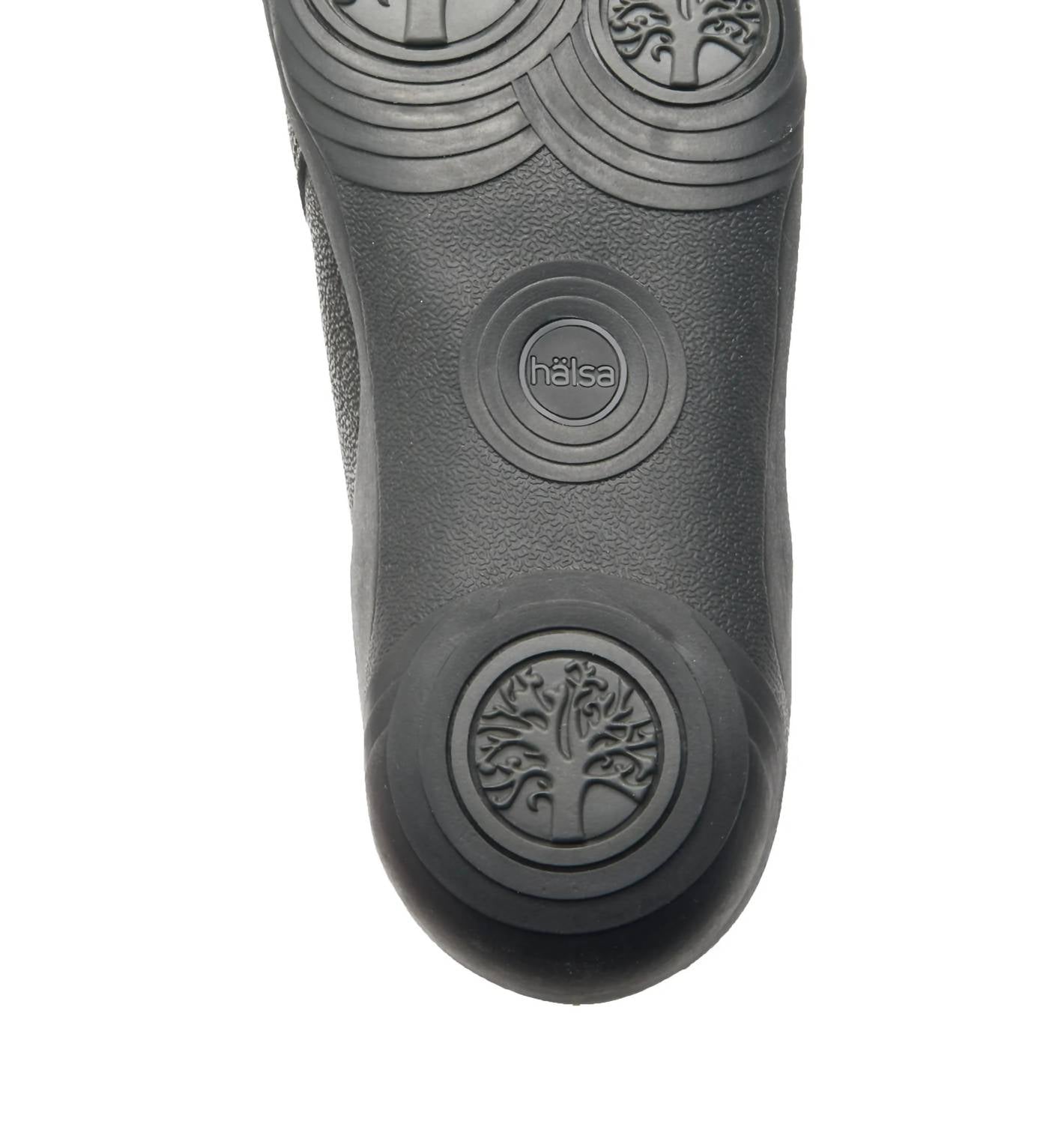 A trend that everyone is loving and this style might just be our favorite. Step up your comfort game with the Women's Anna Velcro Clog by Halsa Footwear, available in versatile black. This clog features a leather upper, ensuring durability and style, while the cushioned EVA footbed offers superior comfort and arch support. It includes an adjustable, elasticized strap with a hook-and-loop closure for a secure fit. Perfect for daily wear, these clogs are designed to keep your feet healthy and happy, with a textile lining, rubber sole, and round toe shape.