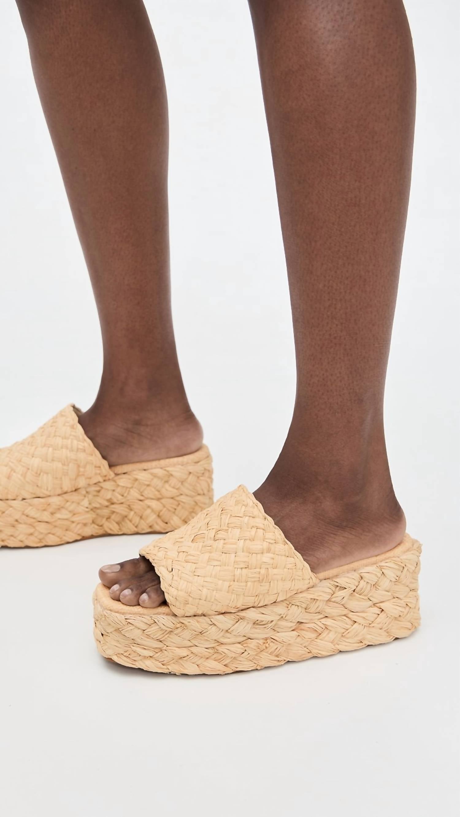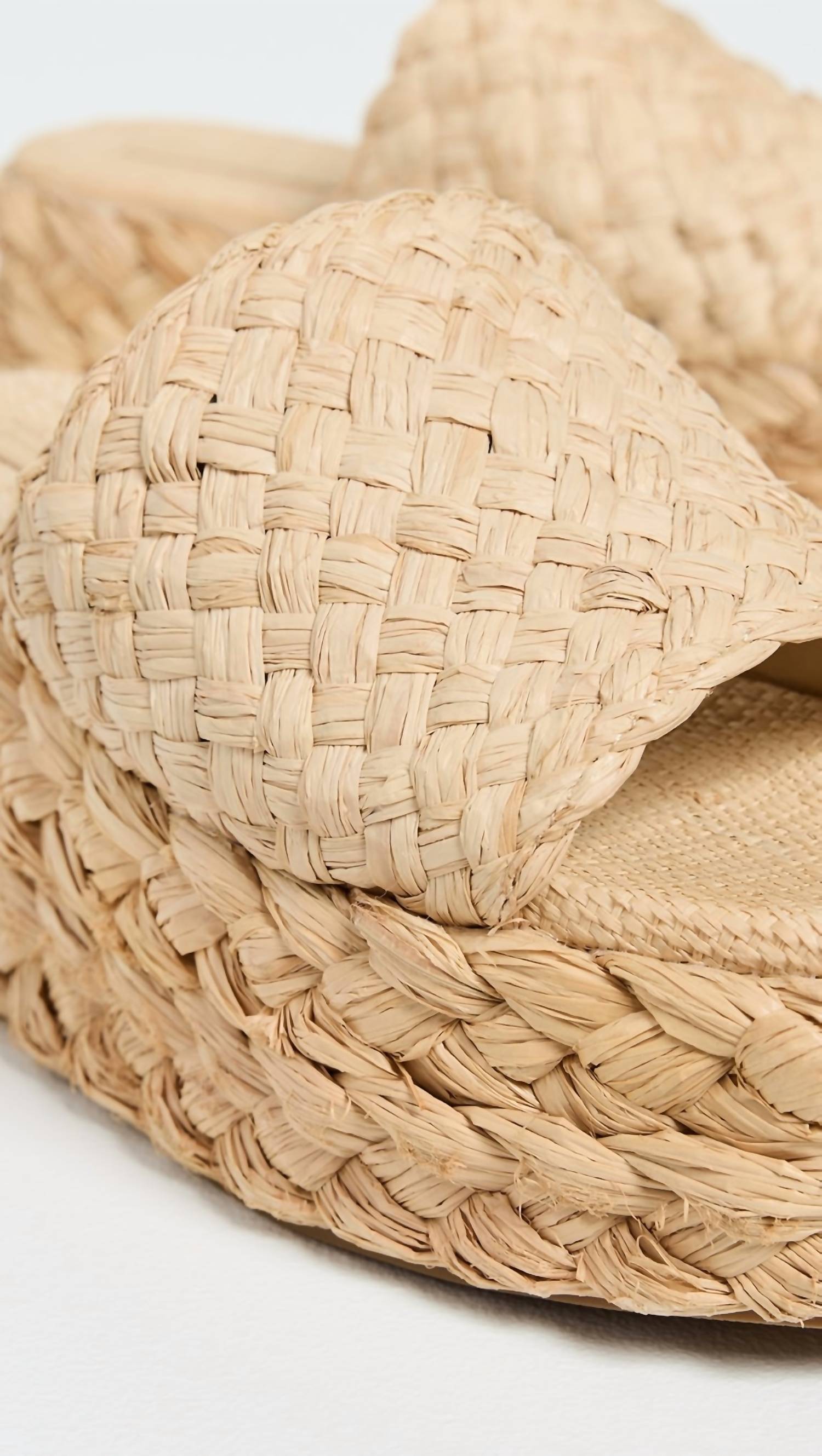 Slip them on and go! The Women's Aaron Platform Mule by Loeffler Randall is a chic choice for summer outings, offering a natural hue in a stylish wedge heel design. Crafted from 100% raffia with a rubber outsole, these slip-on mules feature an open round toe and a cushioned footbed for comfort. The raffia upper combined with a leather lining ensures breathability, ideal for travel and 90s-inspired fashion looks. Made in Vietnam, these mules have a platform heel height of 2.75 inches.
