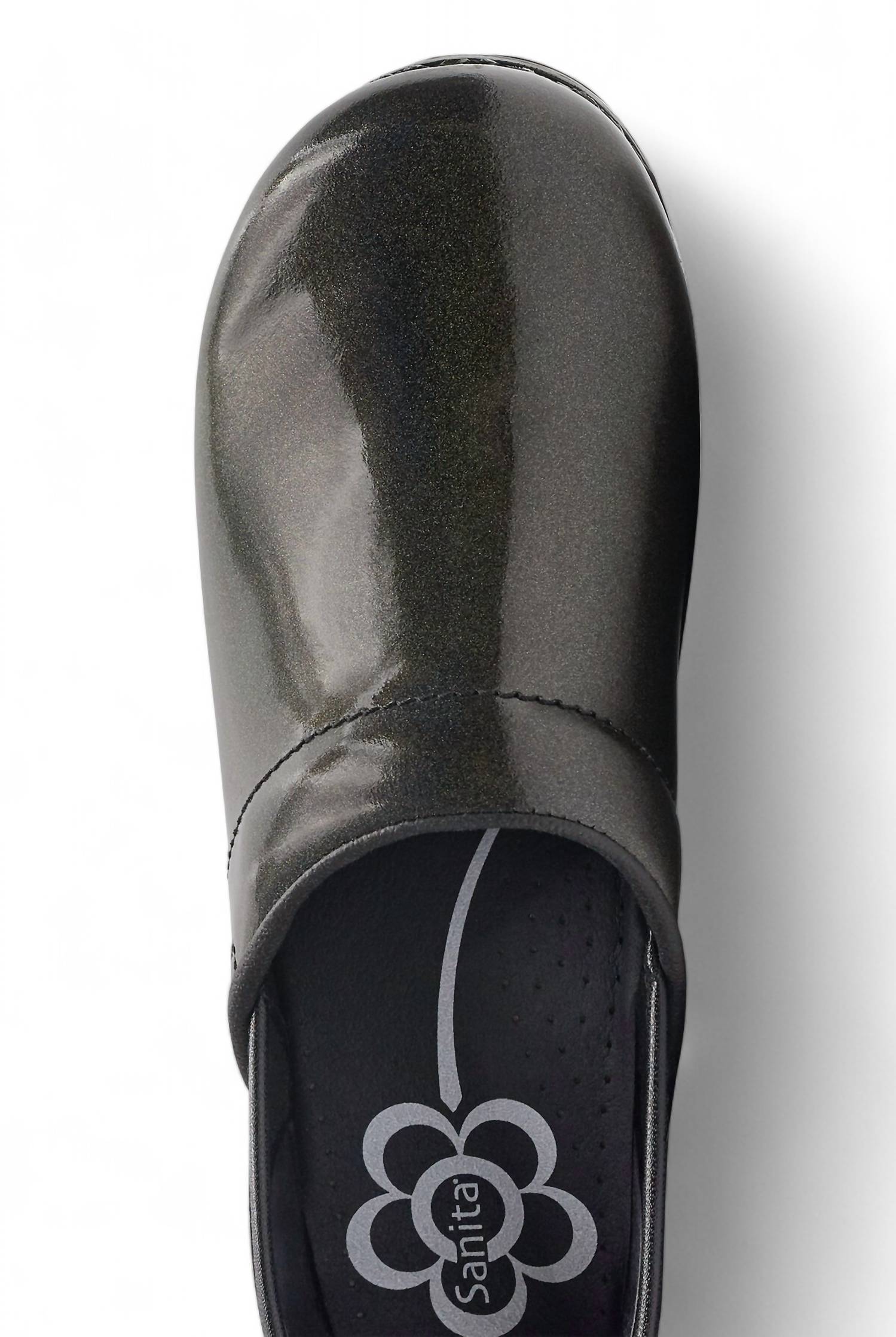 Stylish, comfy, and versatile. We can't find anything wrong with these. This clog features a patent leather upper with a roomy toe box for enhanced comfort. It includes a padded instep and an anatomically shaped footbed for optimal support. The breathable Onsteam® microfiber insole ensures a comfortable experience, while the shock-absorbing and flexible PU sole provides durability. The rocker bottom design contributes to a natural walking motion. Accepted by the APMA and featuring an ASTM-certified slip-resistant outsole, this clog combines safety and functionality. The heel height is 2 inches.