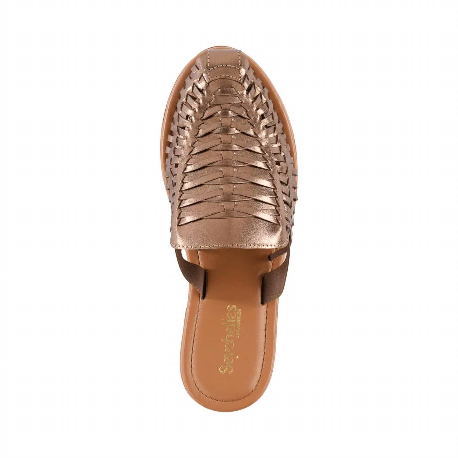 Stylish, comfy, and versatile. We can't find anything wrong with these. Step into effortless style with the Women's Little Italy Mule by Seychelles, featuring a chic bronze hue for a touch of elegance. These backless slip-on mules showcase an artisanal woven upper crafted from soft, unlined leather, providing both comfort and style. The flat heel measures at a 0.5" height with a 0.25" platform, complemented by a round toe for a relaxed fit. Perfect for summer beach days, they offer a true-to-size fit that effortlessly elevates your warm-weather wardrobe.