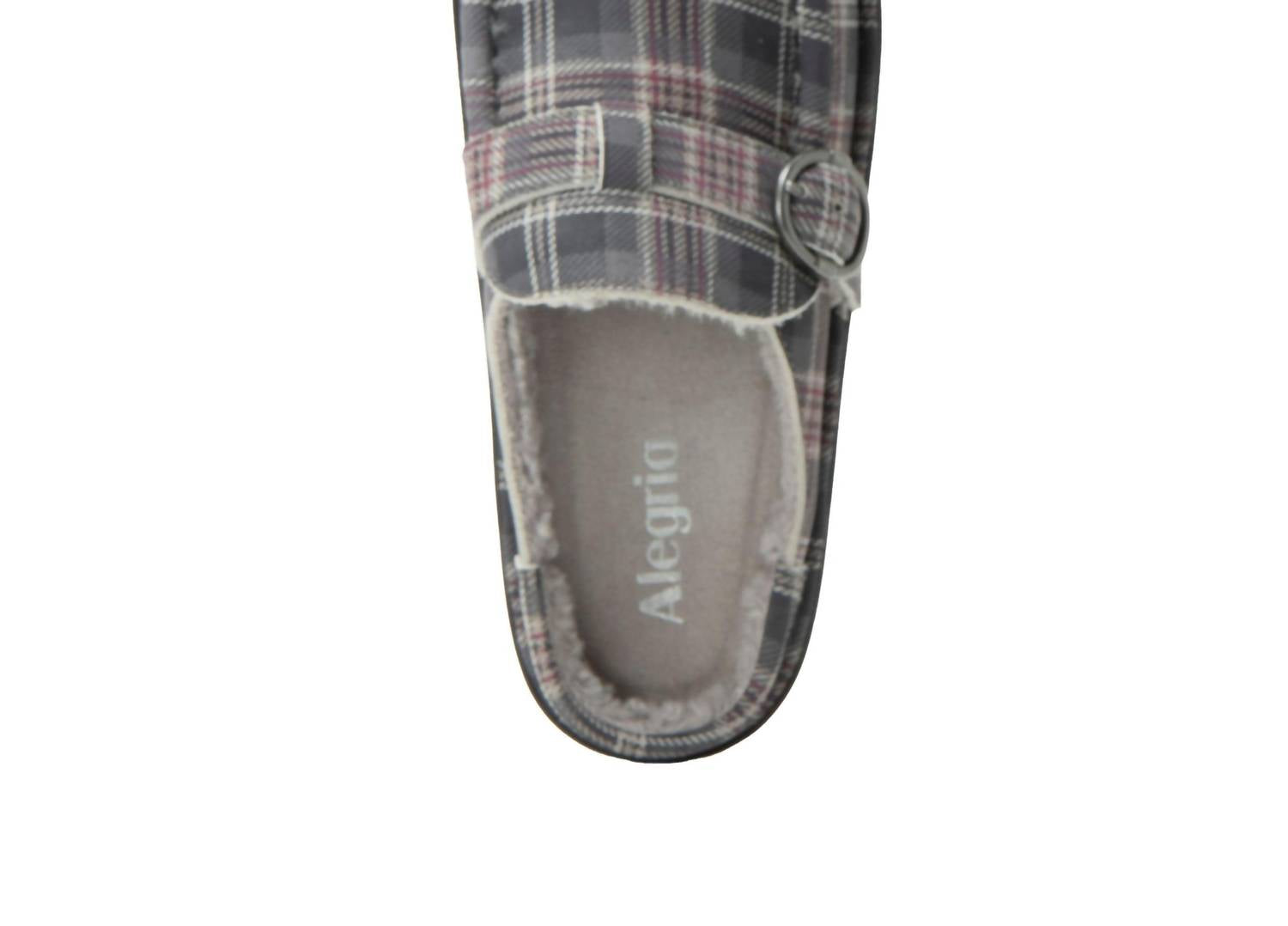 A trend that everyone is loving and this style might just be our favorite. Meet the Women's Brigid Plaid Leather Mules by Alegria, a stylish and comfortable choice for any occasion. These mules showcase a chic plaid design in "Winter Is Coming" with a moc-toe and round toe shape, offering both flair and stability with their adjustable buckle strap and cupped heel lip. The inclusion of a patented removable footbed composed of memory foam and cork ensures ergonomic comfort, complemented by a suede leather footbed. Heel height is a modest 1 inch, perfect for minimalist style trends, and hand-stitched detailing adds a touch of quality craftsmanship.