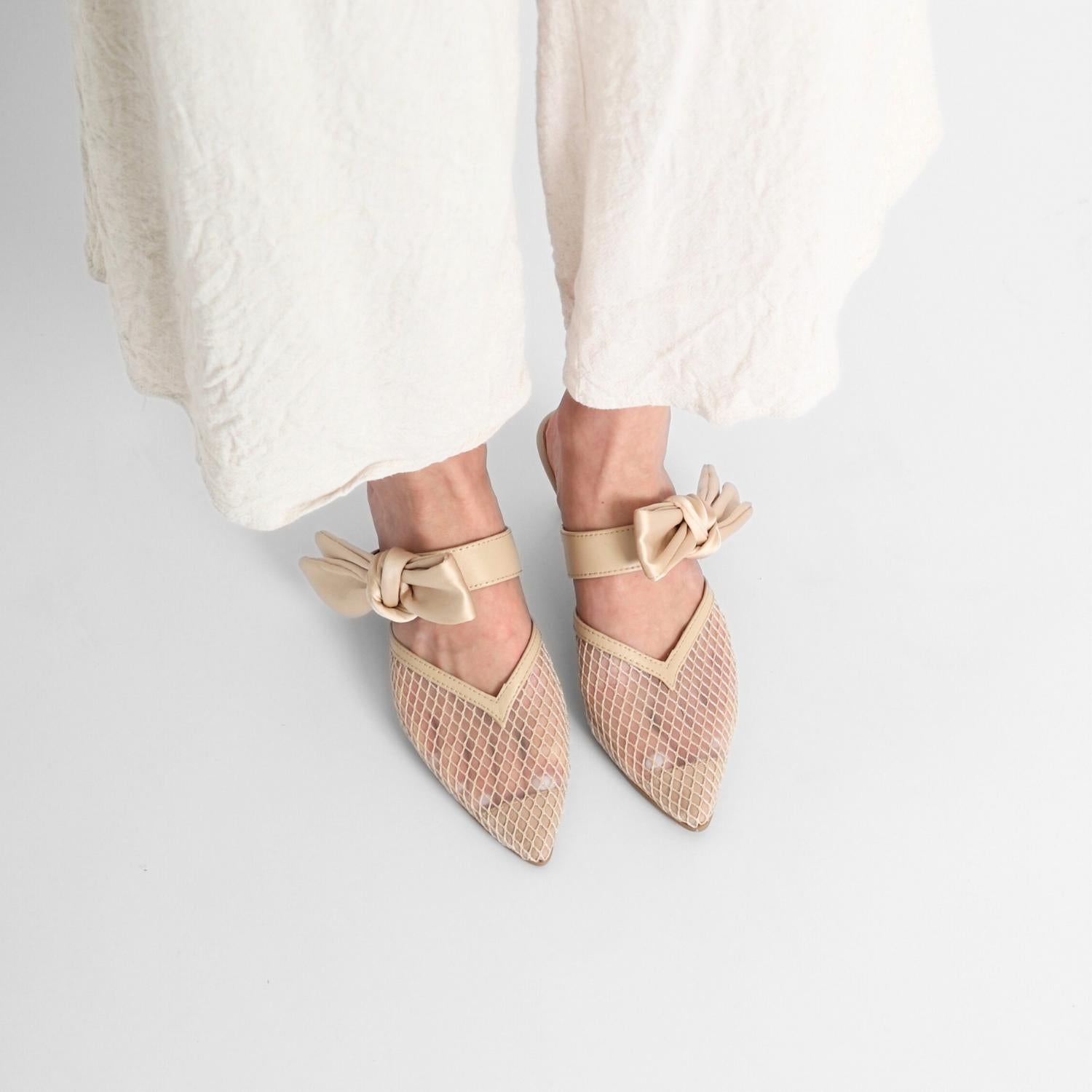 Slip them on and go! Introducing the Women's Side Bow Mule by ALL BLACK, a sophisticated choice in beige for your next chic outing. These mules boast a mesh upper that provides a lightweight feel, complemented by an oversized satin bow for a playful elegance. Designed with a kitten heel and pointed toe, they offer a perfect blend of modern charm and classic femininity. Ideal for summer events, from weddings to daytime gatherings, these slip-ons are a must-have for the season.