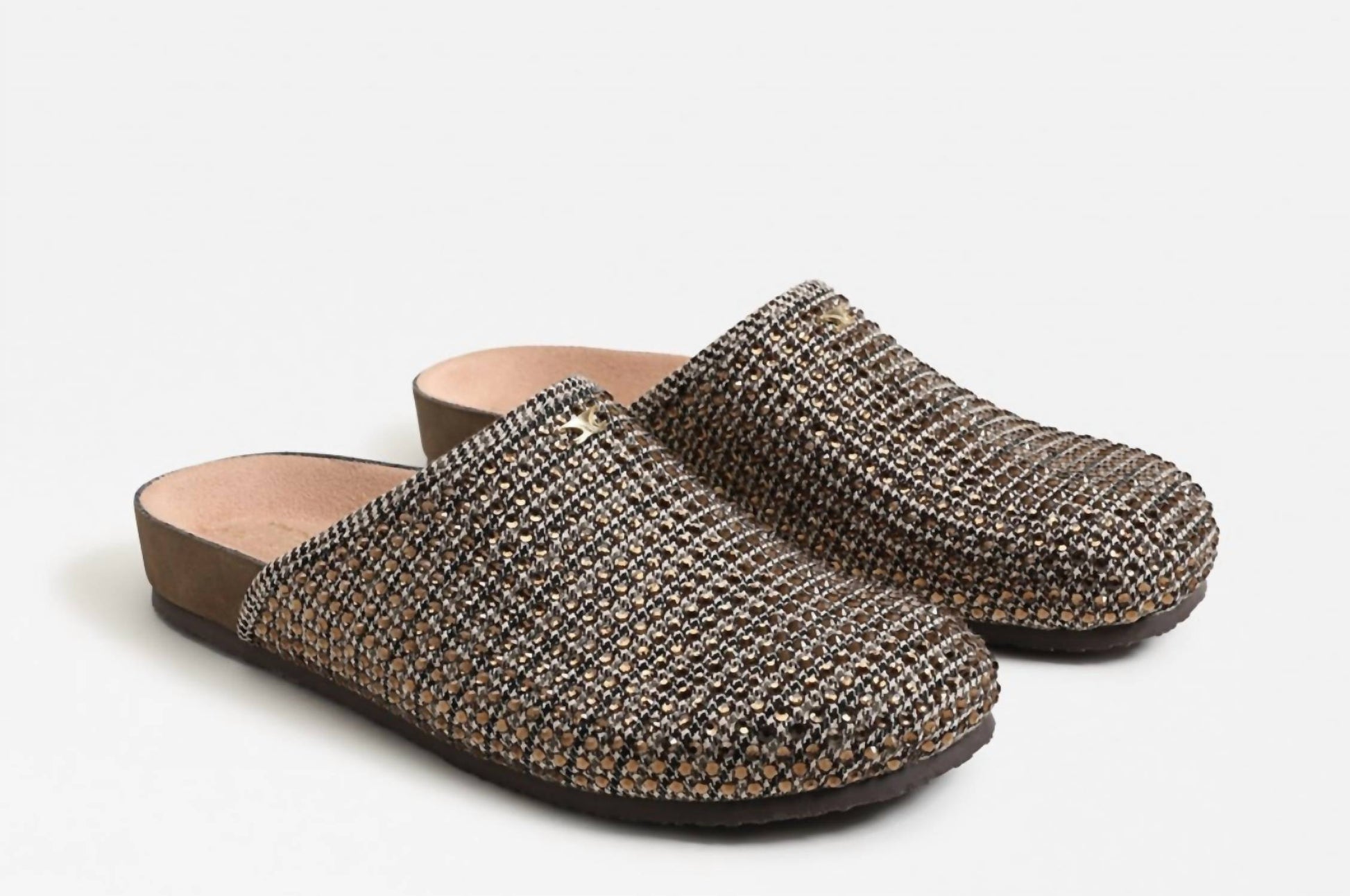 A trend that everyone is loving and this style might just be our favorite. This slip-on fabric shoe features an oblique toe and is decorated with embellishments. It has a 0.375-inch heel and a synthetic insole.