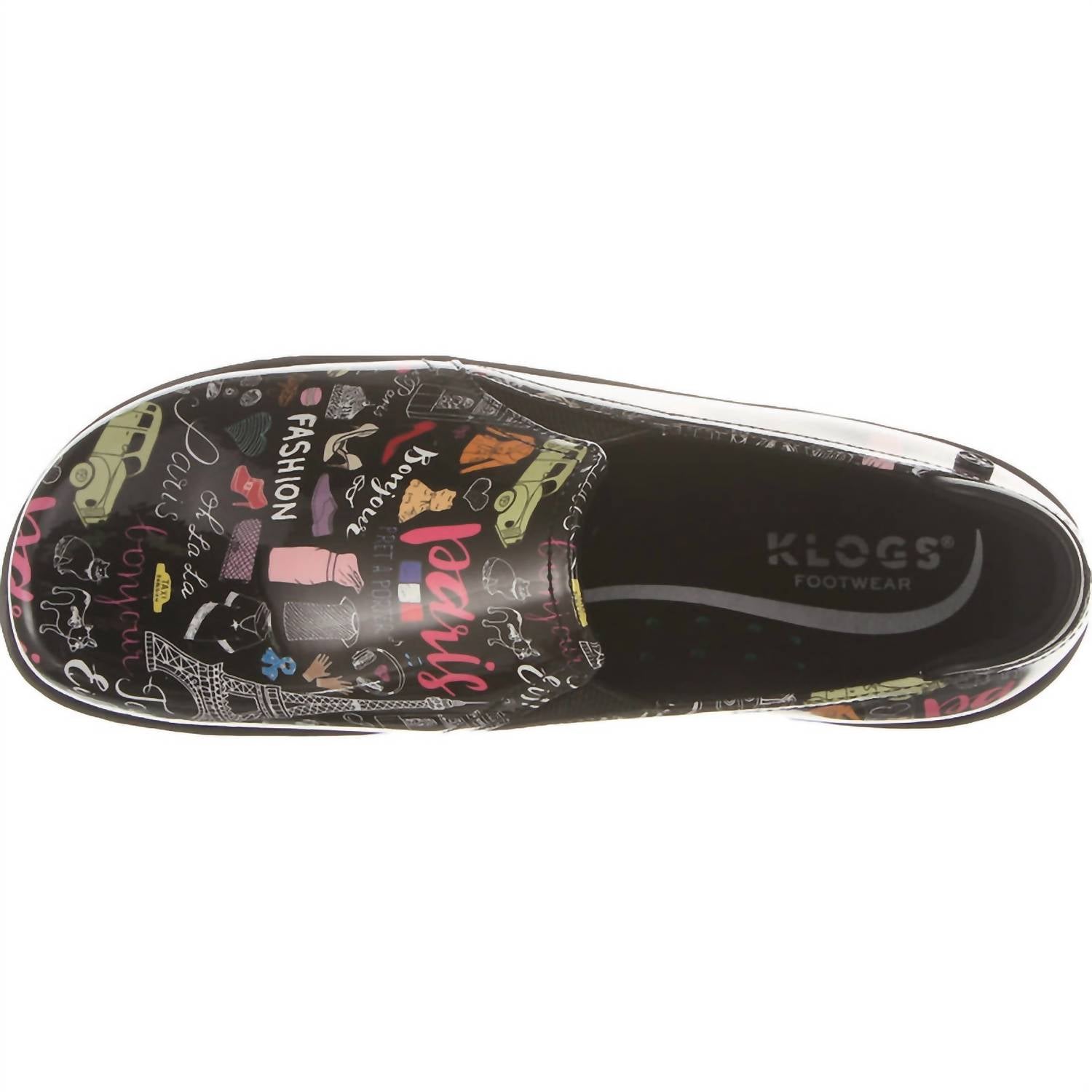Introducing the Women's Moxy Slip-on Work Clog by Klogs Footwear, a stylish and functional choice for professionals. In a chic Paris Patent finish, these clogs feature smooth full-grain leather uppers and a comfortable closed-back design with round toes. The TRUBase slip-resistant outsoles ensure safety, while the TRUComfort insoles offer excellent arch support and cushioning, reducing foot, back, and leg pain. Care is simple: gently wipe with a soft, dry, or damp cloth, taking care not to saturate the upper. The Moxy is perfect for navigating demanding environments with ease.