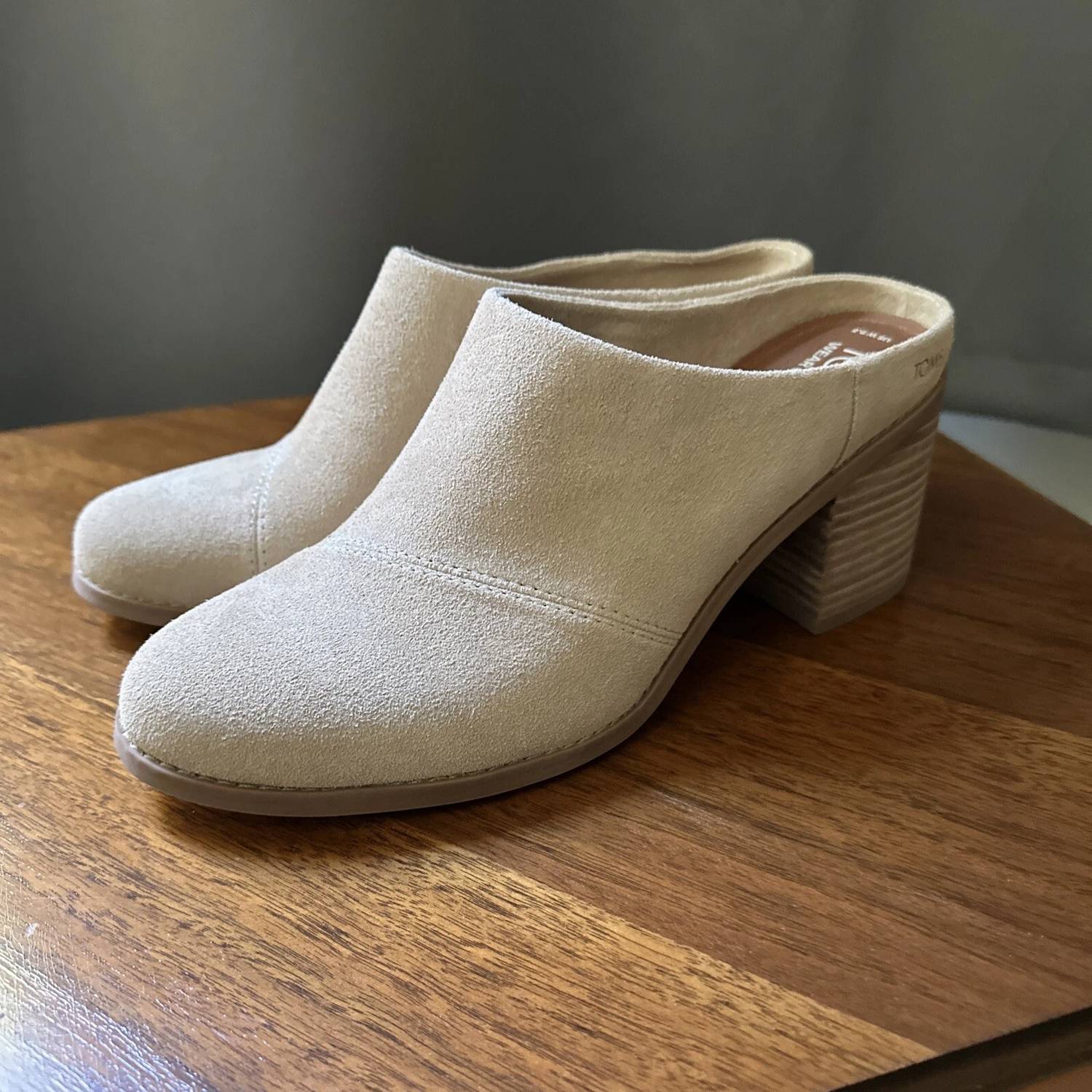 Elevate your special occasions with the Women's Evelyn Suede Mule by TOMS, the perfect choice for spring celebrations and Mother's Day gifts. With a chic round toe and a mid block heel measuring between 2 1/4"-3", these mules embody the trend of quiet luxury. Crafted for women, they add a touch of elegance to anniversary events or any upscale gatherings. Available in a sophisticated oatmeal color, these mules seamlessly blend style and comfort.