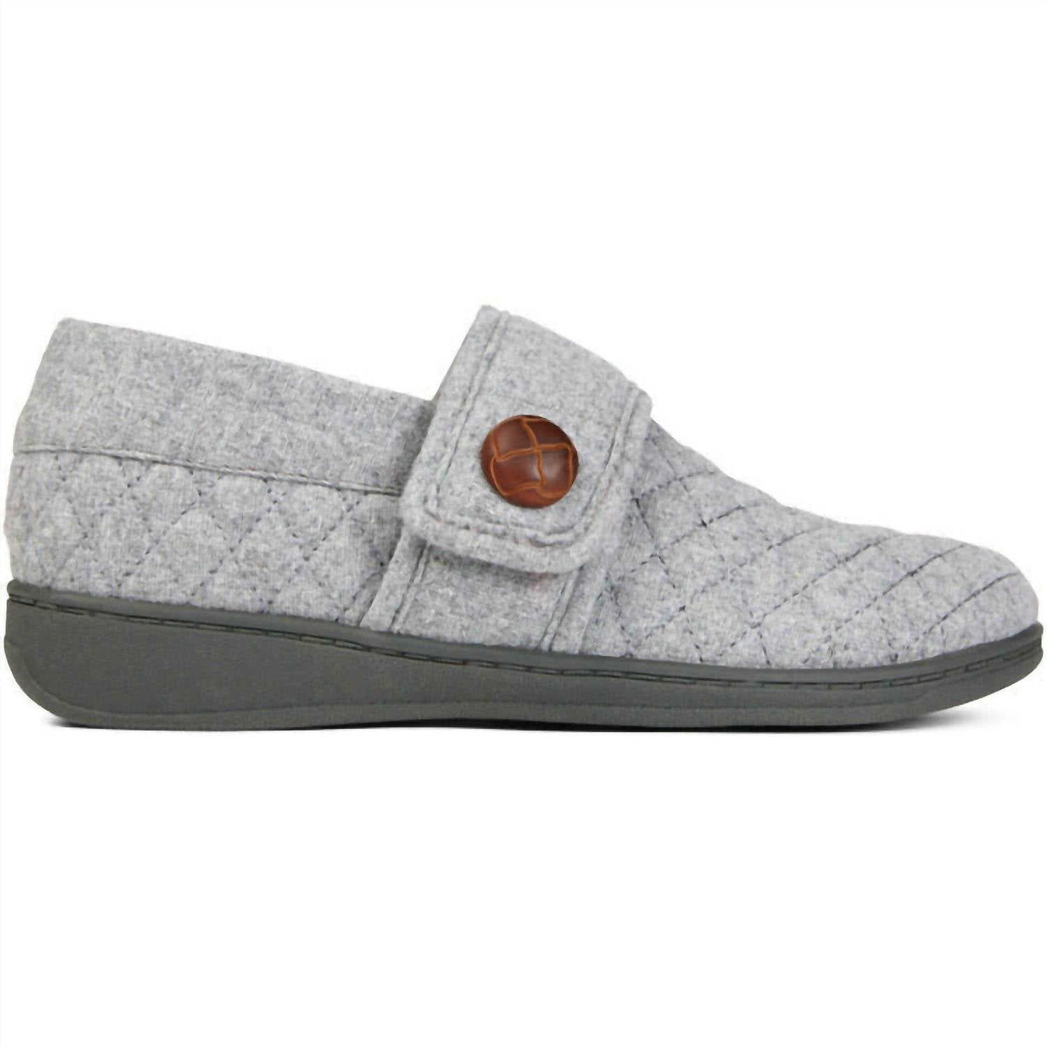 Stylish, comfy, and versatile. We can't find anything wrong with these. Step into comfort with VIONIC's Women's Jackie Slipper, a perfect blend of classic 90s fashion and modern technology. Featuring a stylish black flannel upper with a cozy terry lining, these slippers offer a secure fit with a convenient hook-and-loop closure. The textile-covered EVA footbed and durable rubber outsole ensure support and durability, with a comfortable 1.30-inch heel height. Ideal for travel and spring season adventures, these slippers are designed exclusively for women and come in whole sizes only.