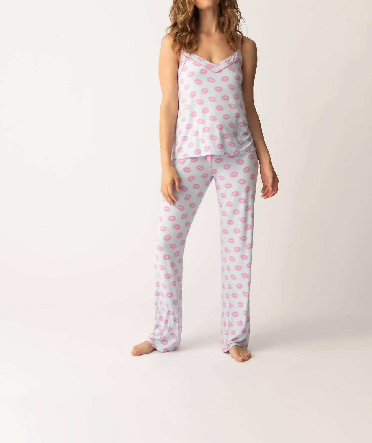 Elevate your loungewear collection with the Women's Lovely Dreams Pants by PJ Salvage, showcasing a delightful pink kiss pattern. Crafted from 95% Modal and 5% Elastane-Jersey, these pants promise a comfortable fit, perfect for unwinding at home. Pair effortlessly with the matching cami for a complete look. Care is simple: machine wash cold, do not bleach, and tumble dry low. Model is 5'8" and is wearing a size Small.