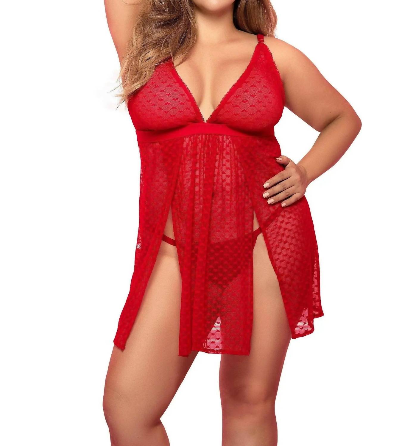 Mapale - Red Hearted Babydoll Nightgown - Plus Size