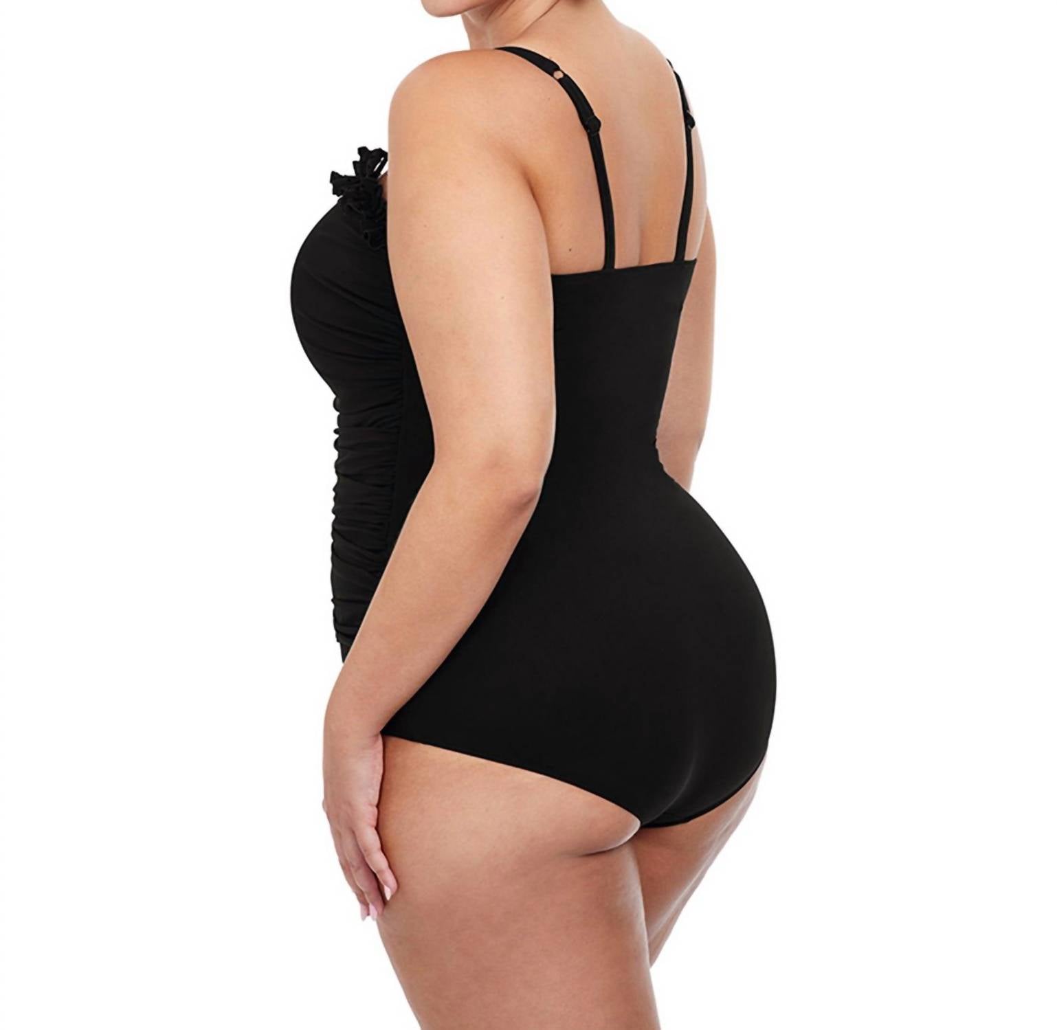 This Bandeau one piece swimsuit features a soft cup bra, tummy control, adjustable and removable straps, shirred underwire. 72% polyamide, 28% elastane.