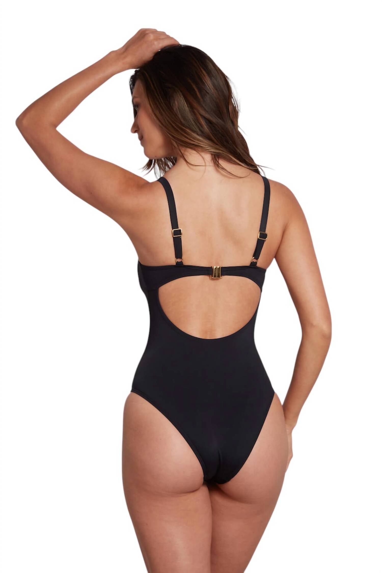 Experience the elegance of Sauipe's Woman's One Piece Swimsuit with Molded Cups, tailored for discerning tastes. This swimsuit, handcrafted in Brazil, features a solid black design made from high-quality polyamide, ensuring a long-lasting, buttery feel. Designed with molded cups and underwire, it emphasizes comfort and support, with adjustable shoulder straps and a luxurious gold-tone back clasp offering a customizable fit. Resistant to salt water, chlorine, sun, and sand, it promises enduring beauty and durability, perfect for long-term enjoyment.