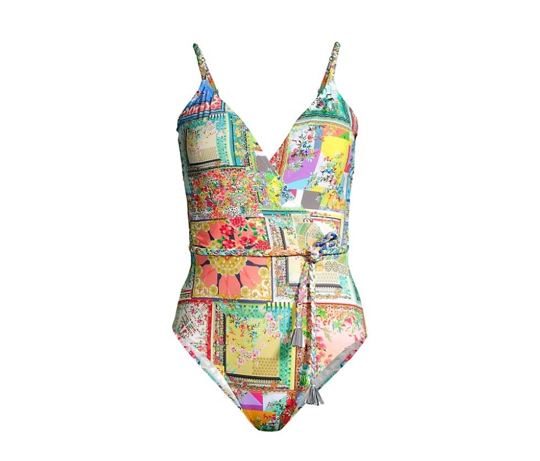 Classic cut, this gorgeous artisan-inspired suit features bright floral details and an ultra-flattering fit. Chlorine, fade and pill resistant. UPF 50+ offers sun protection from harmful UV rays. Model is 5'9" wearing a size Small. Measurements for size medium: Front Rise Length- 18", Bust- 28". Hand wash cold.