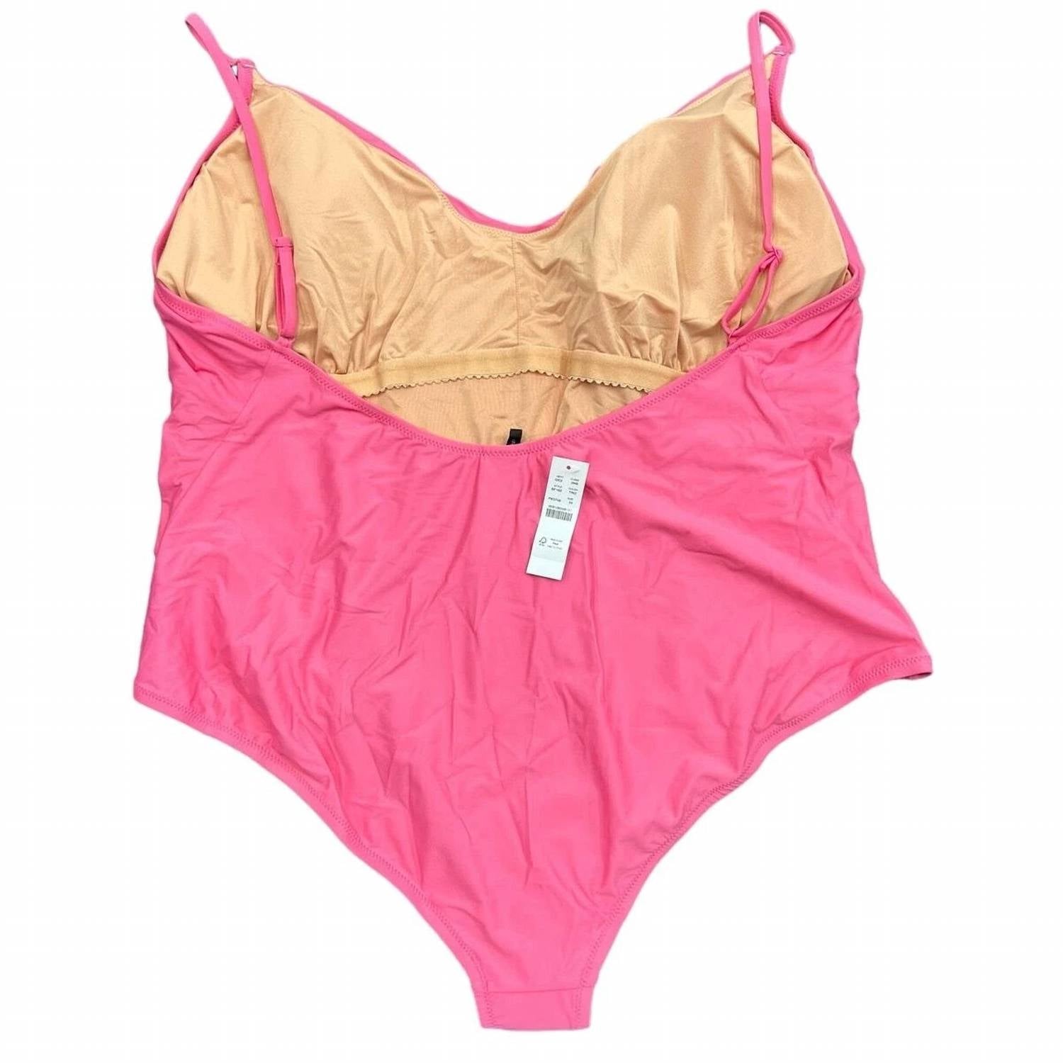 Designed to perfection and fit to flatter. You are going to love this one piece swimsuit. Dive into sustainability with the Women's Scoopneck One-piece Swimsuit by J.Crew, crafted with over 60% recycled materials for eco-friendly style. Made in a pink solid color, this one-piece features a nylon blend composed of 82% recycled nylon and 18% elastane, while the lining incorporates 92% recycled polyester and 8% elastane. Designed for comfort, it includes removable padding and offers approximate measurements of 21" pit to pit, a 20.5" waist, and a 30.5" length when laid flat. Care instructions suggest hand washing to maintain the suit's shape and fabric quality, although it is machine washable.
