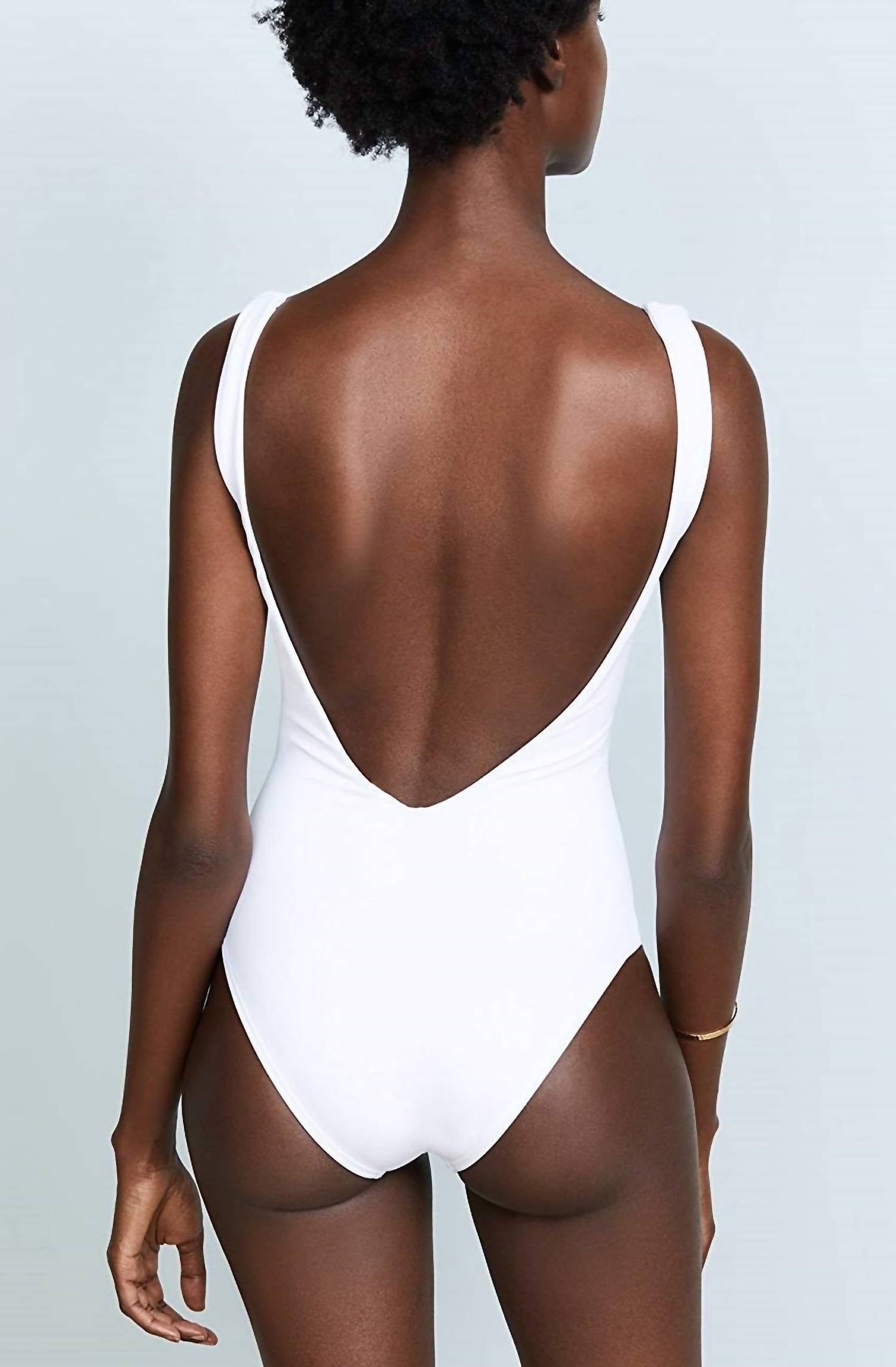 Elastane,Polyester. Imported. 3" high. 7" wide. Leaf print, V-shaped back. 82% polyester/18% elastane. Hand wash. Open back. This sleek L*Space maillot looks lush and tropical—perfect for dream beach vacations (or just lounging on the lawn).​​