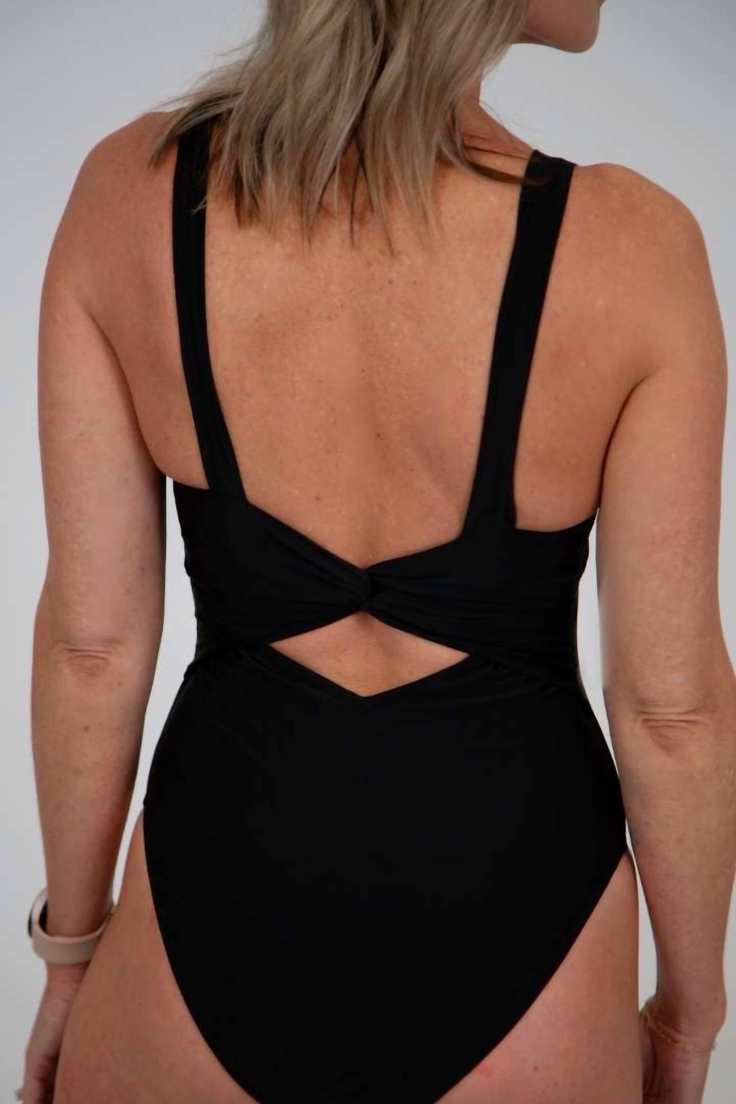 Designed to perfection and fit to flatter. You are going to love this one piece swimsuit. Dive into chic simplicity with the Plunging One Piece Swimsuit by DAVI & DANI in a versatile solid black. Made from 82% Polyester and 18% Spandex, it offers a sleek fit with dimensions varying from 24" to 36" around the bust and lengths ranging from 19" to 26" for every size from Small to 3XL. Ideal for a beach day with cheeky coverage, this swimsuit embodies minimalist elegance for your summer occasions. Care for this stylish piece by hand washing cold and laying flat to dry. Model is wearing a size Small (5'10" height, 34" bust, 25" waist, 35" hips).
