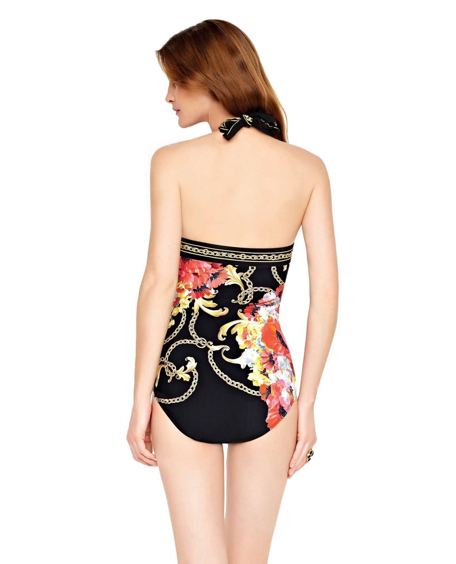 This one piece fits like a glove and covers all the right areas. Dive into summer style with the Gottex Barococo High Neck Underwire One Piece Swimsuit. Crafted from a durable nylon blend, this elegant patterned swimsuit is perfect for a beach day or poolside lounging. It offers medium coverage with underwire support for a flattering fit. For best care, hand wash and line dry. Ideal for a touch of Y2K flair this Thanksgiving season.