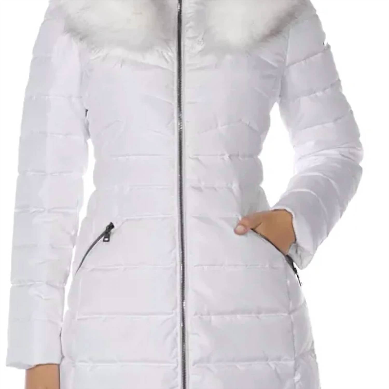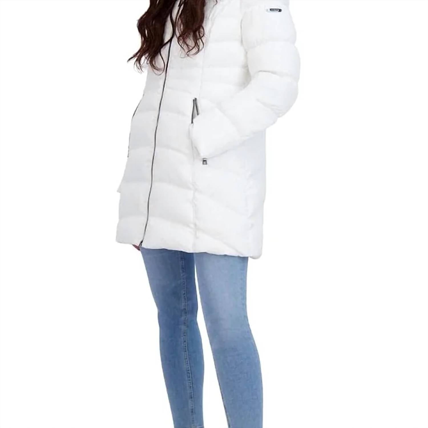 Cozy, cute and timeless. The puffer jacket that will keep you warm all season long. A cold-weather essential with polished, modern appeal, this Laundry by Shelli Segal puffer coat blends warmth, comfort, and a flattering silhouette. Designed in a crisp Real White, this coat features chevron quilting that creates a streamlined look while maintaining lightweight warmth. The hood is finished with luxuriously soft faux-fur trim, offering added insulation and an elevated finish. Thoughtful details include silver-tone hardware, a full front zip closure, and angled zip pockets that combine function with a sleek, contemporary aesthetic. The fitted, mid-thigh length cut provides coverage without bulk, making this an ideal everyday winter coat for city wear, travel, or casual outings. Details: Brand: Laundry by Shelli Segal Style Number: 109001214 Color: Real White Quilted puffer coat with chevron stitching Faux fur–trim hood Full front zip closure Silver-tone hardware Zip pockets at hips Fitted, mid-thigh length silhouette Lightweight yet warm construction Fabric & Materials: Shell: 100% Polyester Lining: 100% Polyester Fill: Polyester insulation Fur Trim: Faux fur Fit Notes: Runs true to size with a slim, flattering fit that layers comfortably without feeling bulky. A versatile, timeless winter coat from a trusted designer — perfect for everyday wear, travel, and polished cold-weather styling