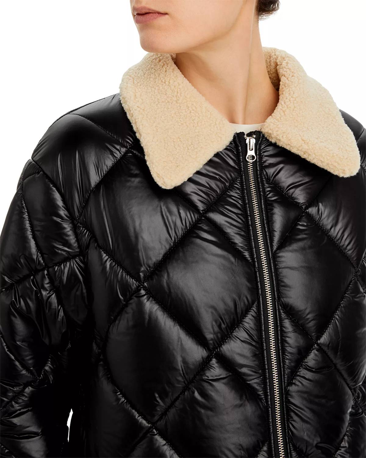 Cooler temps means cute puffer jackets and this one is a fan favorite. Discover the Shay Coat by Rails, a winter essential crafted for both style and function. This black solid puffer features long sleeves and a luxurious sherpa collar, embodying minimalist elegance. Made from 100% nylon, it has a zip closure and measures 27.62 inches in length, making it perfect for travel and winter occasions. Care: Dry clean only. Model is wearing size S (front body length: 27 5/8").