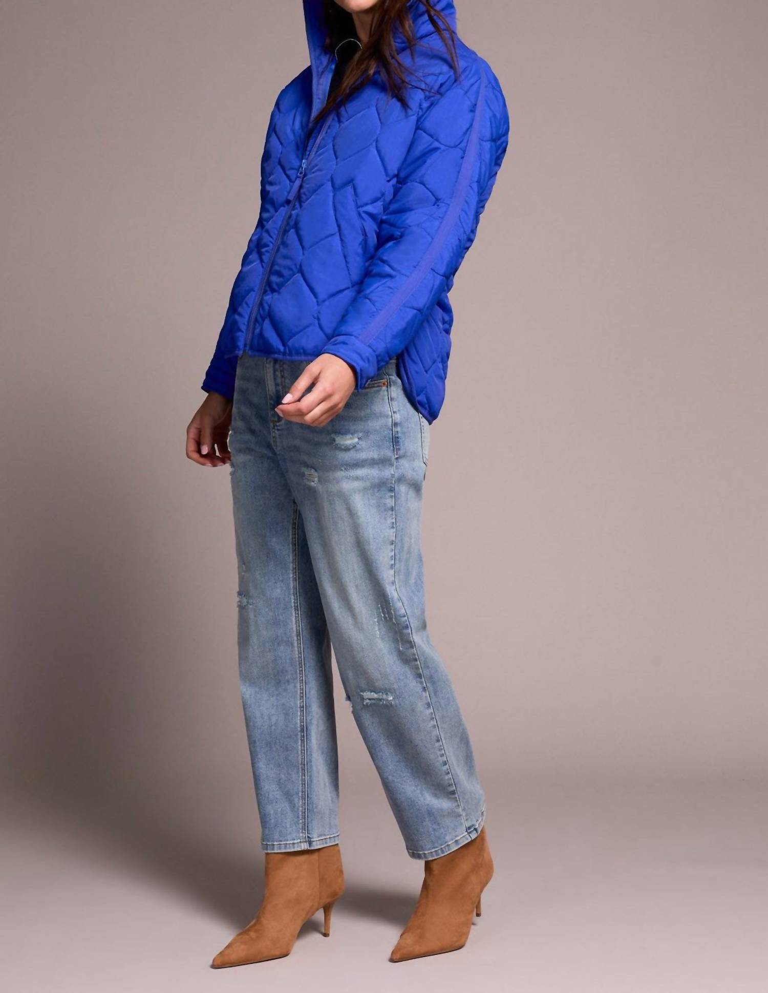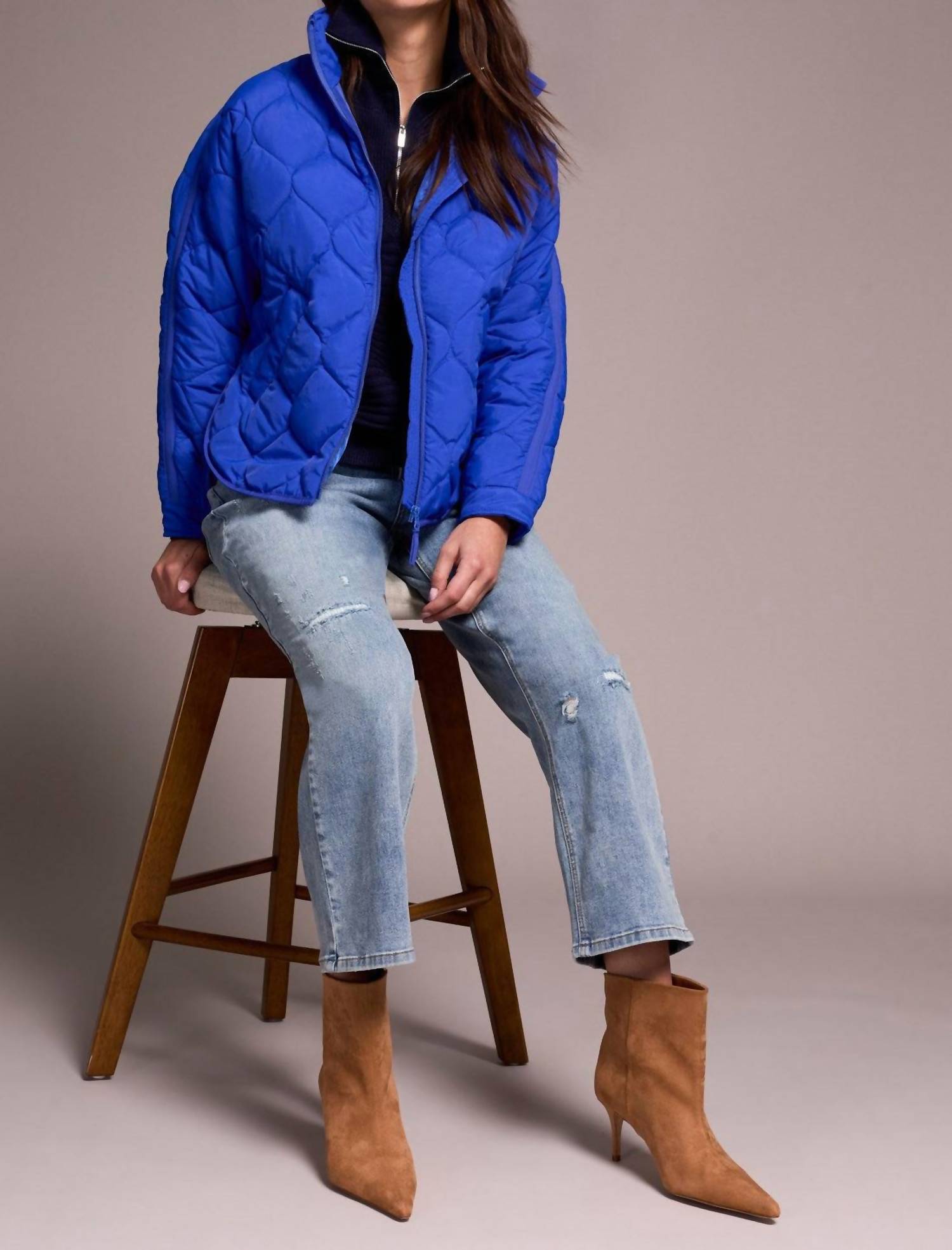 Cooler temps means cute puffer jackets and this one is a fan favorite. Embrace the cold in style with the Women's Quilted Jacket by TRIBAL, crafted from 100% Nylon for a sleek and durable finish. This Lapis Blue puffer features long sleeves and a practical zip closure, perfect for your winter vacation wardrobe. The elegant quilted pattern and collar neckline give it a chic monochrome look. Care is a breeze with machine wash and line dry instructions, ensuring your jacket maintains its polished appeal.