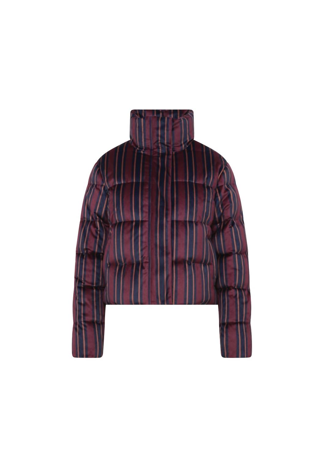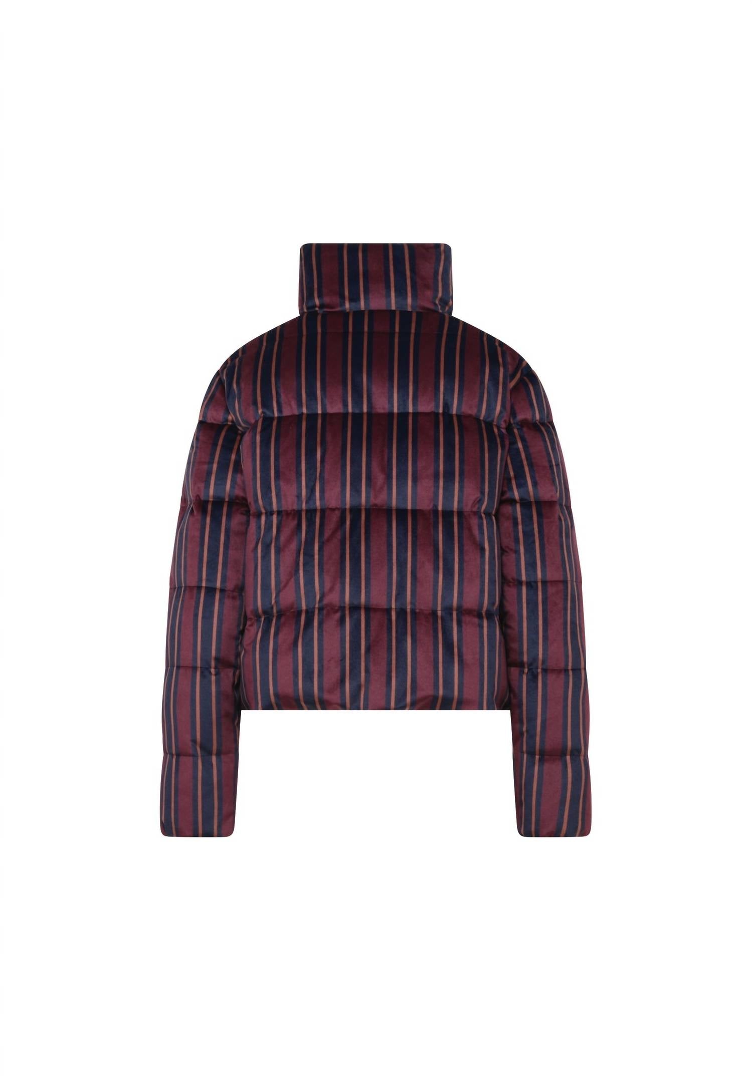 Cozy, cute and timeless. The puffer jacket that will keep you warm all season long. Introducing the Boundless Puffer Jacket by Unreal Fur, a chic addition to your winter wardrobe with its multicolour stripe pattern. This women's jacket features long sleeves and a modern cropped silhouette with a high funnel neck for added warmth and style. Crafted from 100% polyester, it comes with a convenient zip closure. Care instructions dictate dry cleaning for optimal maintenance. Perfect for embracing quiet luxury during travel and New Year's Eve celebrations.
