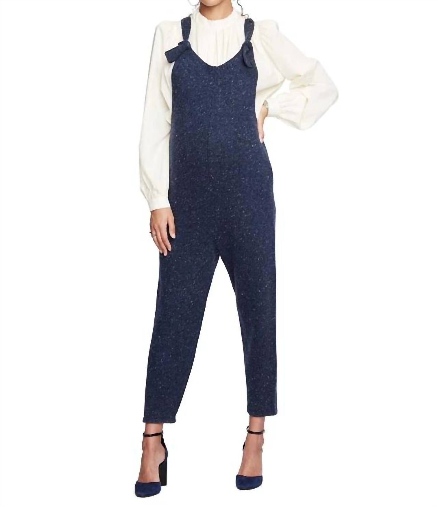 Who doesn't love a good pair of overalls? Discover the Hatch Maternity Knit Overall, a perfect blend of style and comfort for expecting mothers. This wool blend piece, crafted from 65% lambswool and 35% nylon in a chic blue hue, adapts seamlessly to a growing bump throughout every trimester. With a relaxed fit and tapered leg, this overall features a tie closure and practical pockets, ensuring both functionality and style. Designed with petite sizing, it measures 47 inches in length, excluding the straps, and has an inseam of 23 inches, making it ideal for shorter expecting moms.