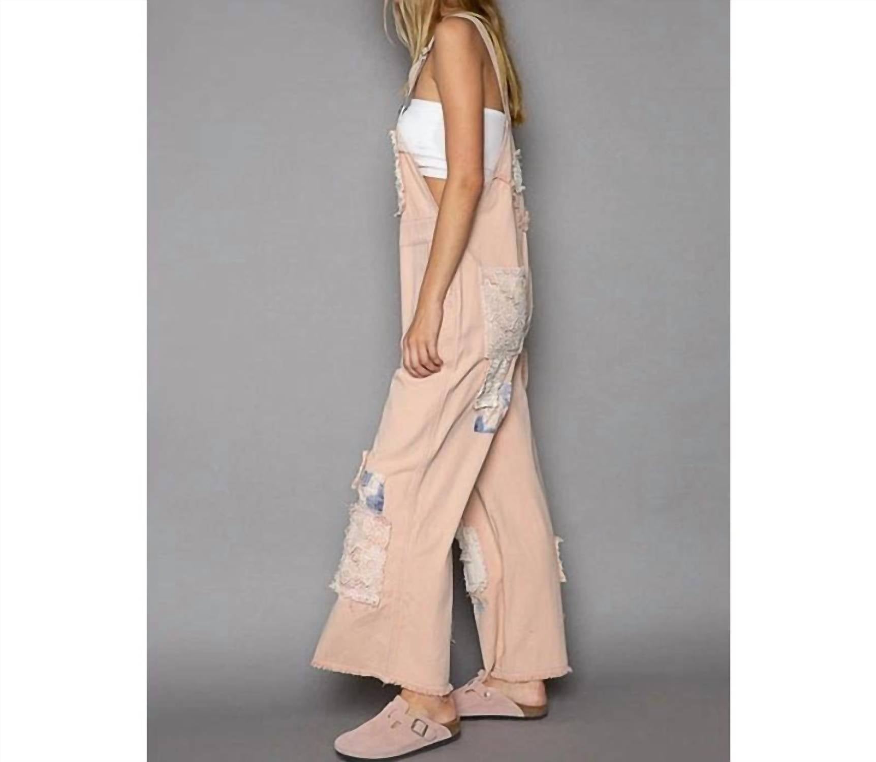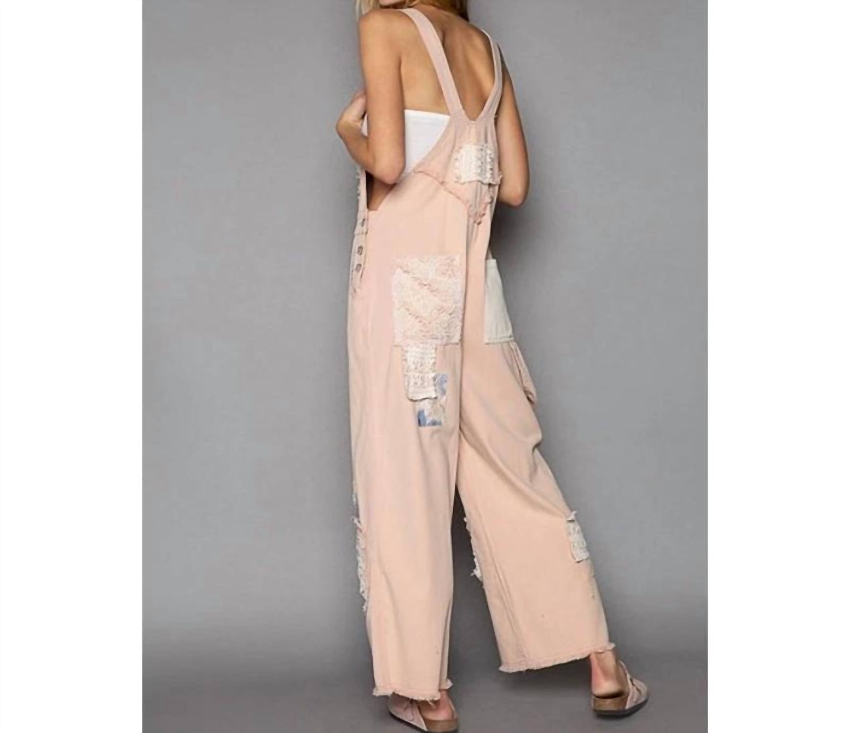 Pol - Crochet Patchwork Detail Casual Denim Overalls