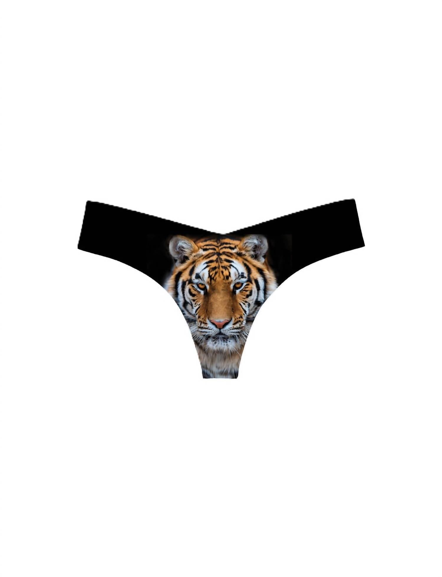 Feeling good starts with your first layer. Unleash your wild side with the Women's Photo Op Thong Panty by Commando in the striking Orange Tiger print, crafted for the adventurous spirit. Designed with a luxury European microfiber blend of 78% nylon and 22% spandex, this thong promises high fabric breathability and a supremely comfortable fit. Made in the USA, it features an elastic-free, low-rise construction with a cheeky graphic design, ensuring a seamless look. For optimal care, machine wash and line dry.