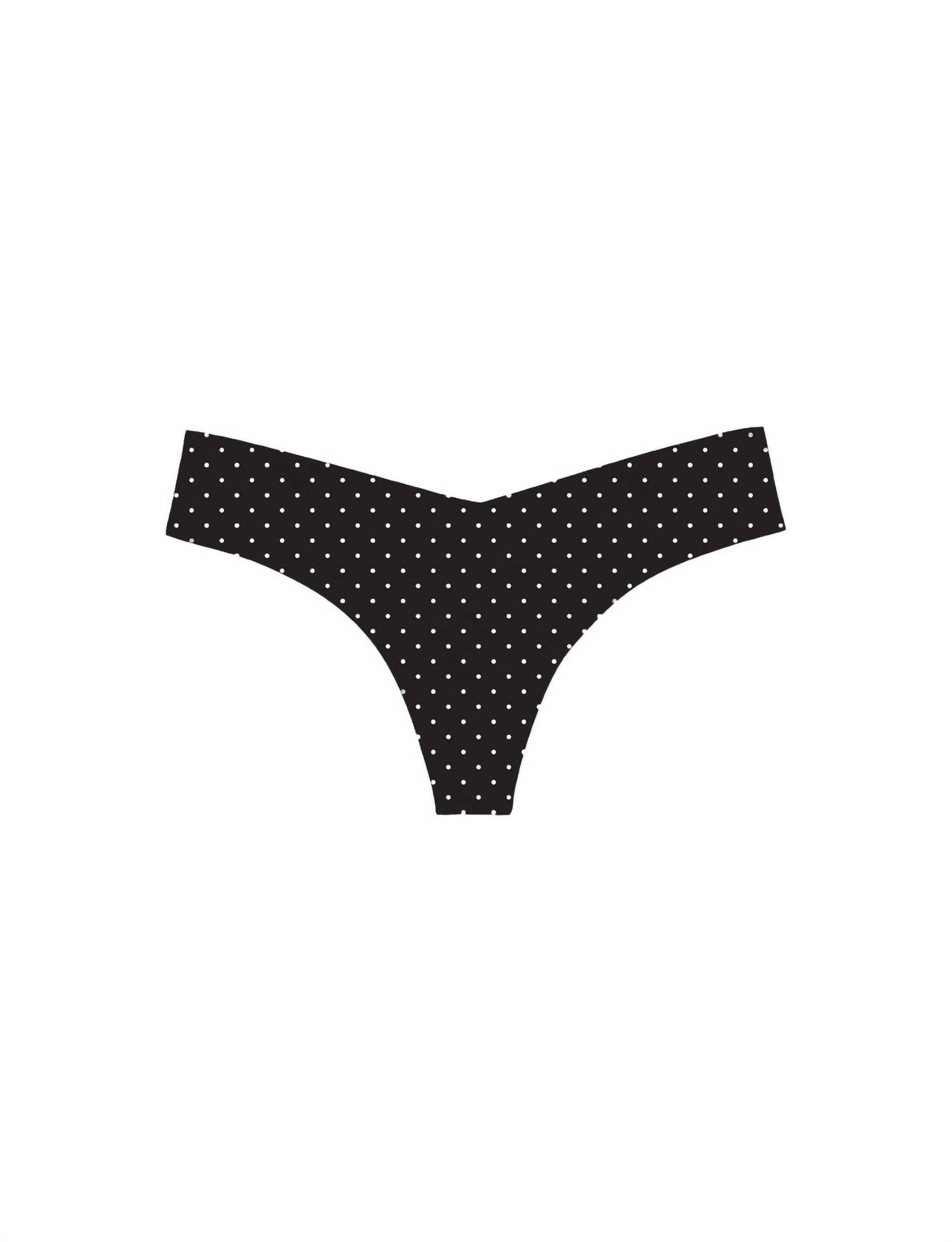 Feeling good starts with your first layer. Discover ultimate comfort with the Women's Printed Low Rise Tagless Thong Panty by Commando, featuring a classic thong silhouette in a playful black & white polka dot pattern. This seamless, edgeless underwear fits like a second skin, ensuring no visible panty lines. Made from a stretchy nylon blend of 78% nylon and 22% spandex, with sides measuring 2 1/8 inches and a thong strap narrowing to 1 inch. Care for these cheeky panties is simple: machine wash and line dry. Available in sizes S/M, M/L, and L/XL, accommodating a range of sizes.