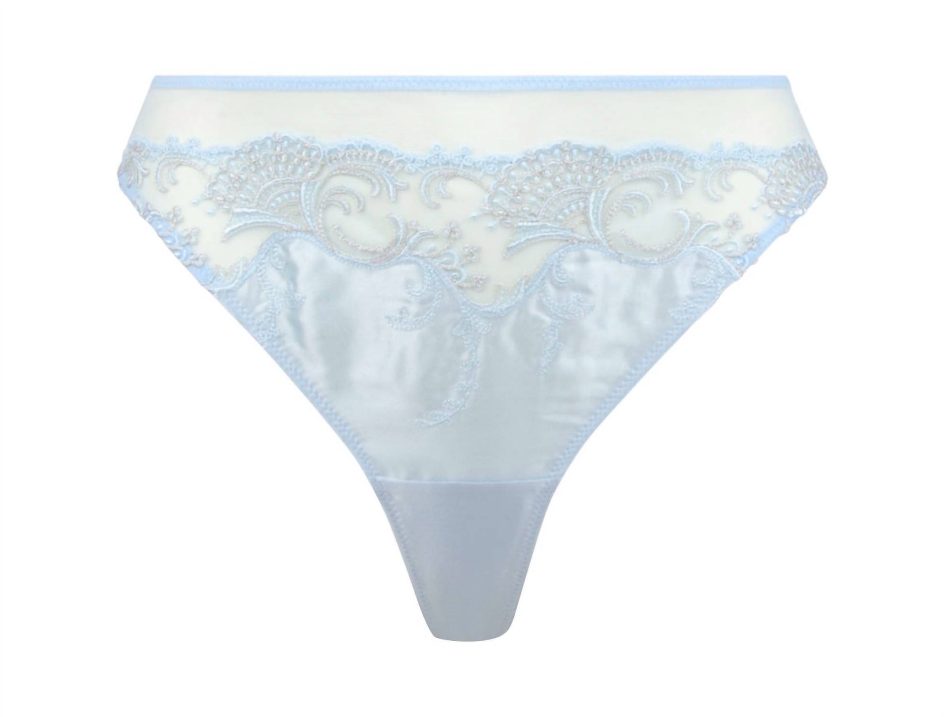 Some say your first layer is the most important. We agree. Experience luxury and comfort with the Splendeur Silk Thong by Lise Charmel, a perfect embodiment of feminine elegance in Azur. This low-rise tanga features a sensual cut with a silk satin front adorned with embroidery on tulle and a tulle back, complete with a delicate satin bow for an exquisite touch. Composed of 52% Silk, 22% Polyamide/Nylon, 11% Polyester, 8% Cotton, and 7% Elastane/Spandex, it offers a unique elasticity and comfort. Care instructions recommend hand washing with delicate soap and laying flat to dry, ensuring easy maintenance and long-lasting beauty.