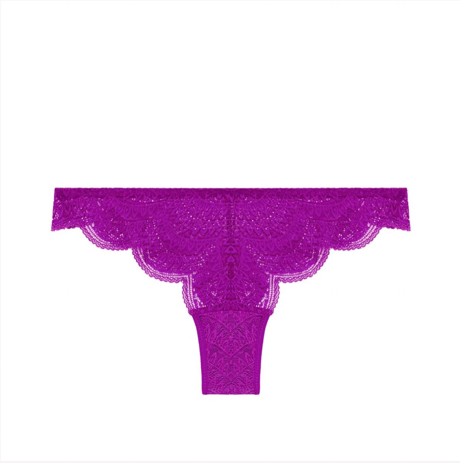 Some say your first layer is the most important. We agree. Experience effortless style with the Karma Tanga by Simone Perele in vibrant Bougainvillea. This women's tanga, featuring a low-rise cut, is crafted from a soft cotton blend comprised of 64% polyamide, 28% elastane, and 8% cotton. The beautiful scalloped lace trim adorns the patterned design, ensuring seamless wear under any chic ensemble. For care, hand wash with a delicate soap, avoid wringing or twisting, and lay flat to dry.