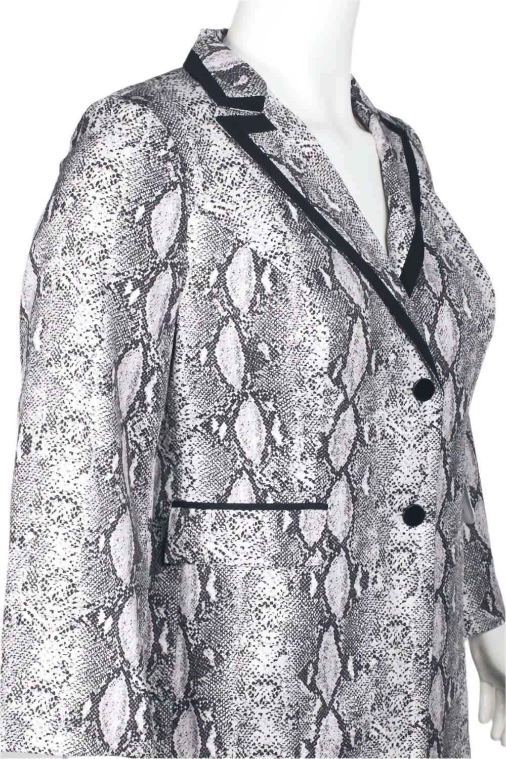 Elevate your professional wardrobe with the Emily Shalant Women's Notched Collar Crepe Jacket & Pencil Pant Set, an ideal ensemble for plus-size women. This elegant pantsuit features a long-sleeve jacket with a tailored notched collar and a two-button closure for a chic, structured appearance. Crafted from stretch crepe (96% Polyester, 4% Spandex) and fully lined in 100% Polyester, it ensures both flexibility and polish. The coordinated black and white animal pattern pants boast a classic fit with a mid-rise elastic waist for added comfort, complete with functional pockets and a sleek straight-leg silhouette. Closure: Button closure. Care: Dry clean only.