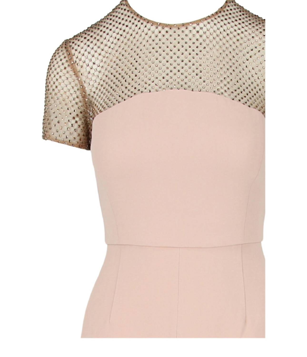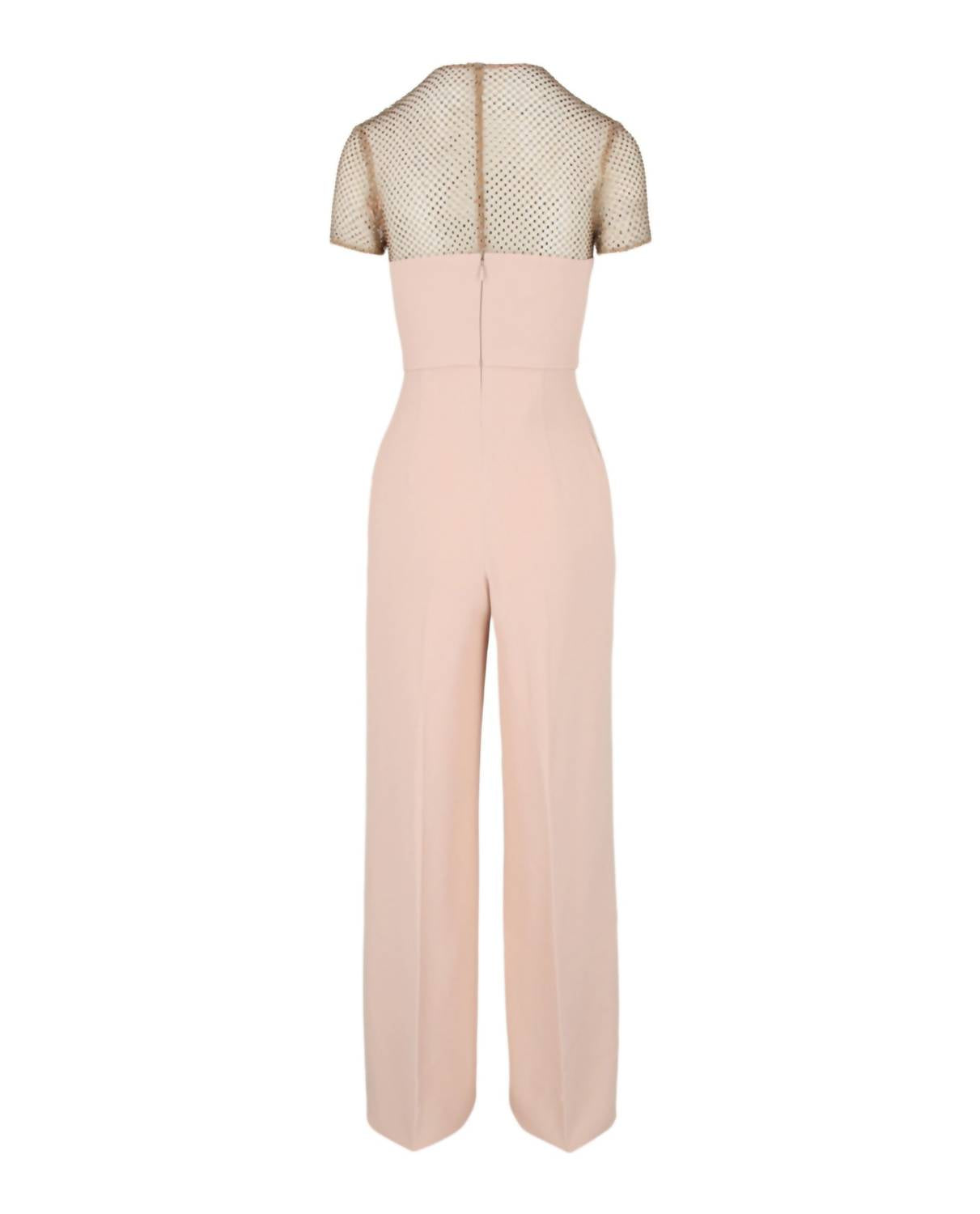 Unveil elegance with the Women's Alysha Crystal-embellished Jumpsuit by Stella McCartney in a soft rose hue, perfect for elevating your summer wardrobe. This Italian-crafted masterpiece features a captivating crewneck and short sleeves adorned with exquisite crystal embellishments. Made from 52% Rayon, 45% Acetate, and 3% Elastane, the fitted jumpsuit boasts a straight leg silhouette and practical hook and zip closure. For care, dry clean only to maintain its pristine condition.