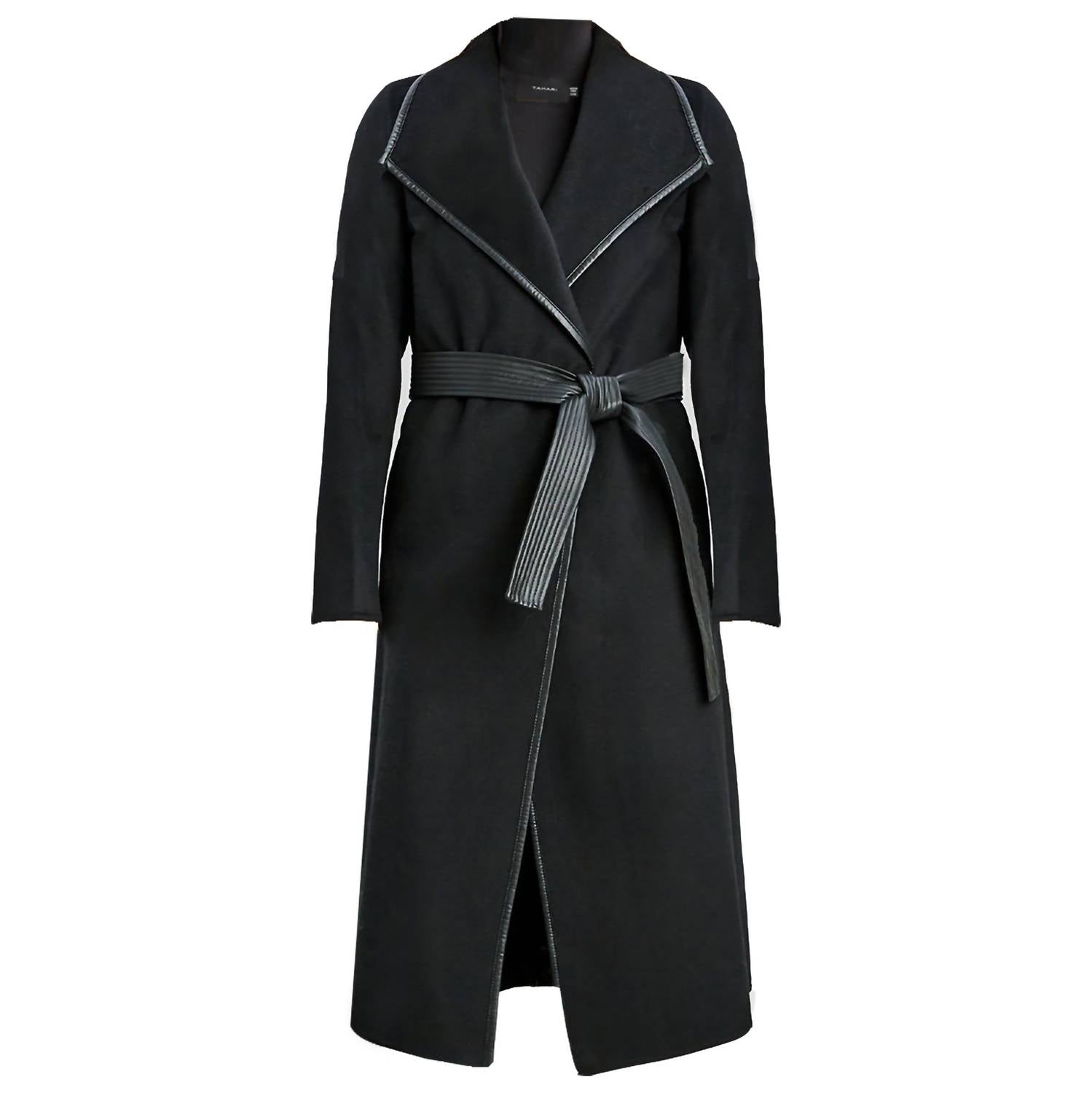 T Tahari - Juliette Double Face Faux Leather Trim Belted  Wool Coat Black