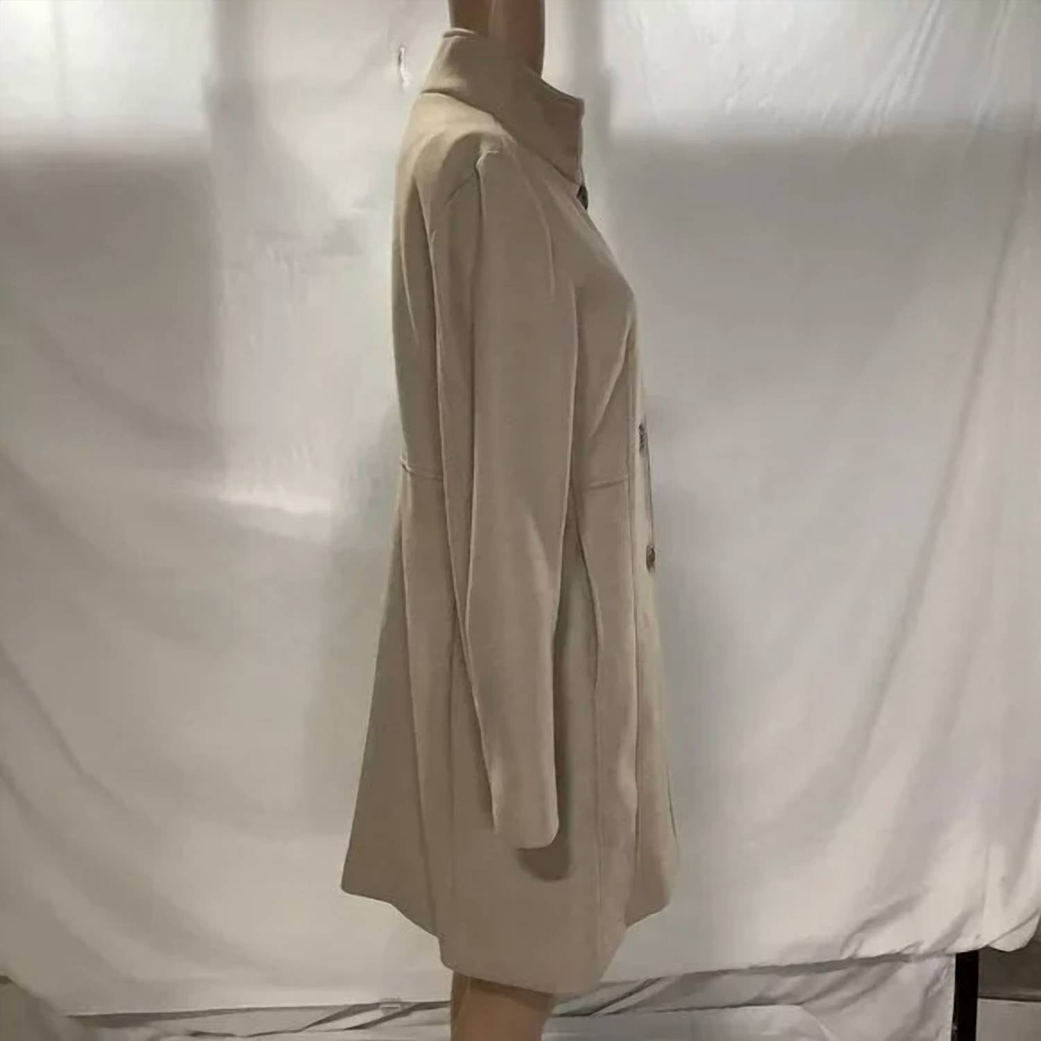 Discover timeless elegance with the Calvin Klein Women's Polyester Button Closure Coat in Light Beige, designed for versatile styling. This coat features a classic button-front closure and a tailored fit, enhancing your silhouette with a sophisticated look. Its long sleeves and soft, high-quality polyester material ensure warmth and comfort without the bulk. Care: Dry clean only.