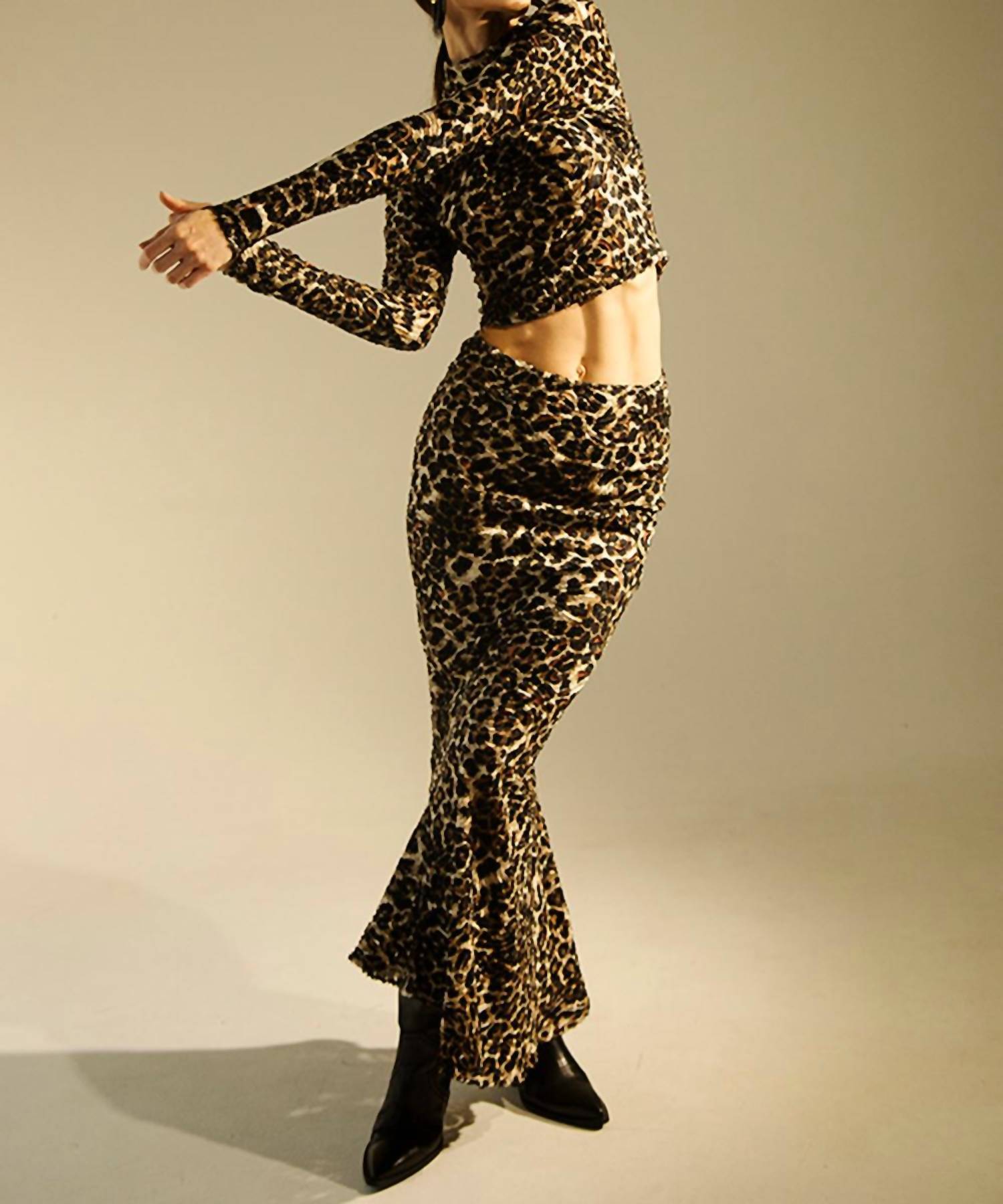 This pencil skirt is suprisingly comfortable and hugs in all the right places. Embrace timeless elegance with the Sevy Maxi Skirt by JBQ, crafted from a plush blend of 86% modal and 13% spandex. Designed with a striking animal pattern, this maxi silhouette features an asymmetric hem that adds a touch of modern flair. The skirt is made in the USA from imported materials and secures with a convenient zipper closure. Care instructions include washing on a cold gentle cycle to maintain its luxurious feel. Model is 5'9" and wearing a size small.