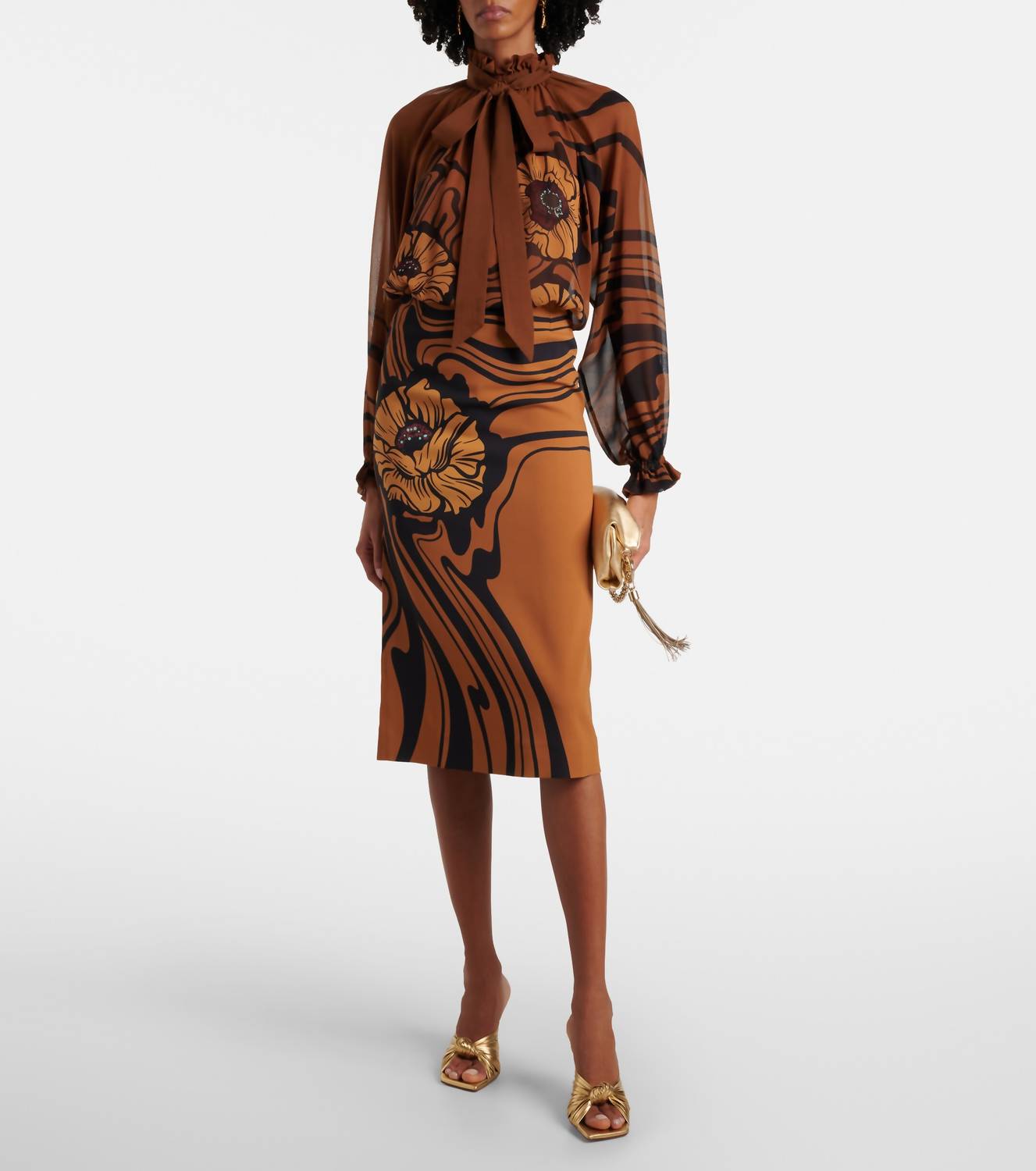 This pencil skirt is suprisingly comfortable and hugs in all the right places. Elevate your dinner party attire with the La DOUBLEJ Pencil Skirt in BIG BLOOMS PLACÉE. This chic women's skirt sits low on the waist and hits approximately mid-calf, crafted from a luxurious viscose blend of 96% viscose and 4% elastane for a comfortable fit. Made in Italy, it features a hand-placed floral print with a slight A-line cut for ease of movement and a contrasting lining. Closure: Zip closure. Care: Dry clean only.