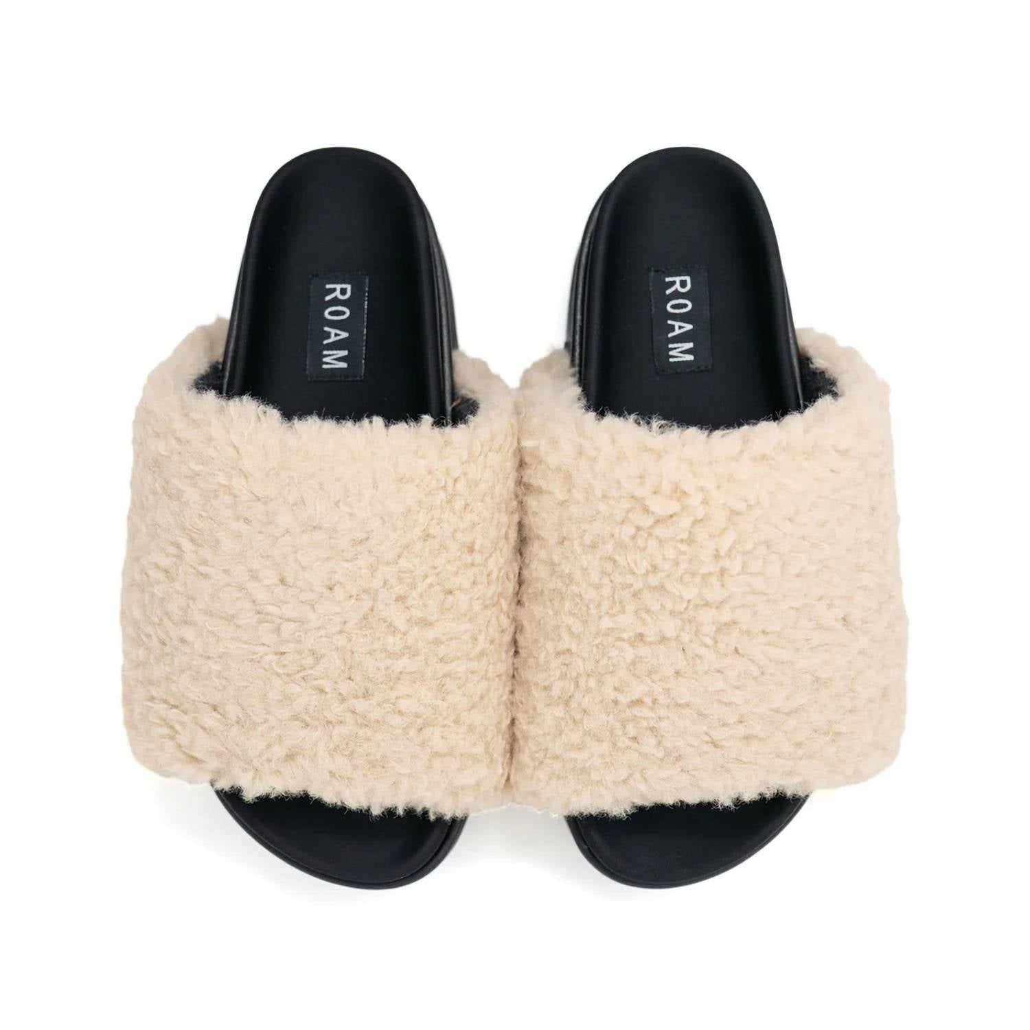 A trend that everyone is loving and this style might just be our favorite. Step into comfort and style showcasing a minimalist trend perfect for vacations. Crafted with an open toe design and a luxurious faux shearling upper lined in cotton fleece, promise supreme softness. Featuring a 1.5-inch low platform heel, the design ensures a natural foot pitch, akin to walking in flat shoes. Boast a custom contoured footbed lined with moisture-wicking neoprene and a durable BIO EVA outsole for stability.