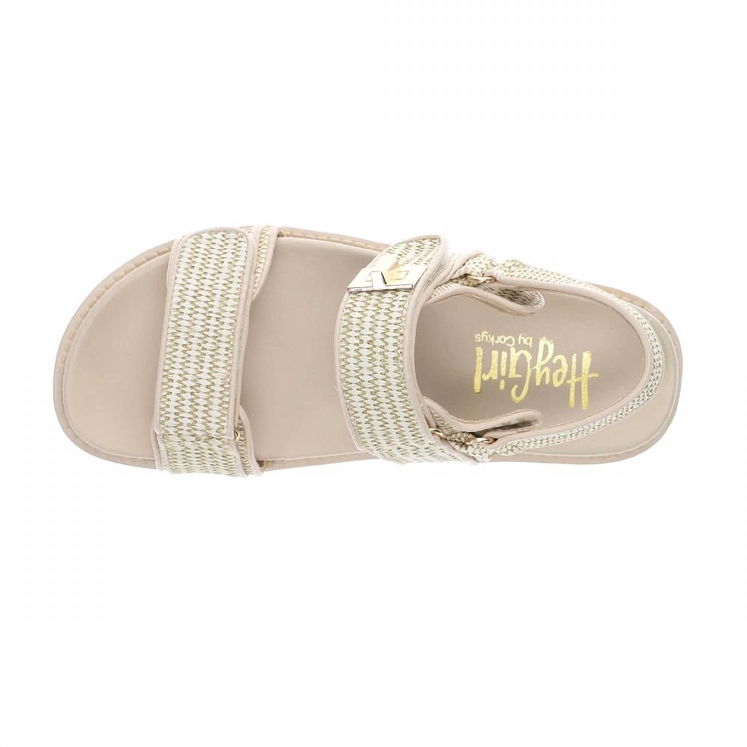Add a little height with the perfect platform. Step into style with the Women's Go For It Platform by Corkys Footwear, crafted with a woven textile upper in a chic sand hue. These platform sandals are designed with adjustable hook and loop straps and feature elegant gold hardware for a secure, personalized fit. The open toe design and low 2" platform heel offer both streetwear appeal and all-day comfort, thanks to the softly cushioned footbed. Finished with a durable rubber outsole, these sandals effortlessly combine elegance and casual comfort.