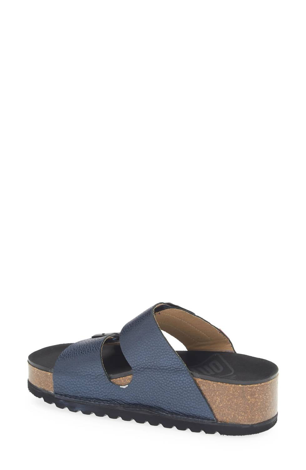 A trend that everyone is loving and this style might just be our favorite. Step into summer in style with the Women's Carefree Platform Sandal by OnFoot, finished in a stunning Starlight Marino navy metallic. This versatile platform sandal boasts a 1 3/4" heel and 1 1/4" platform, providing extreme cushioning and arch support for maximum comfort. The sandal is crafted with a quality leather upper, complemented by a synthetic lining and a durable rubber and synthetic sole. Originating from Spain, it features an adjustable strap with a buckle closure, making it a perfect addition to your vacation and streetwear ensembles.