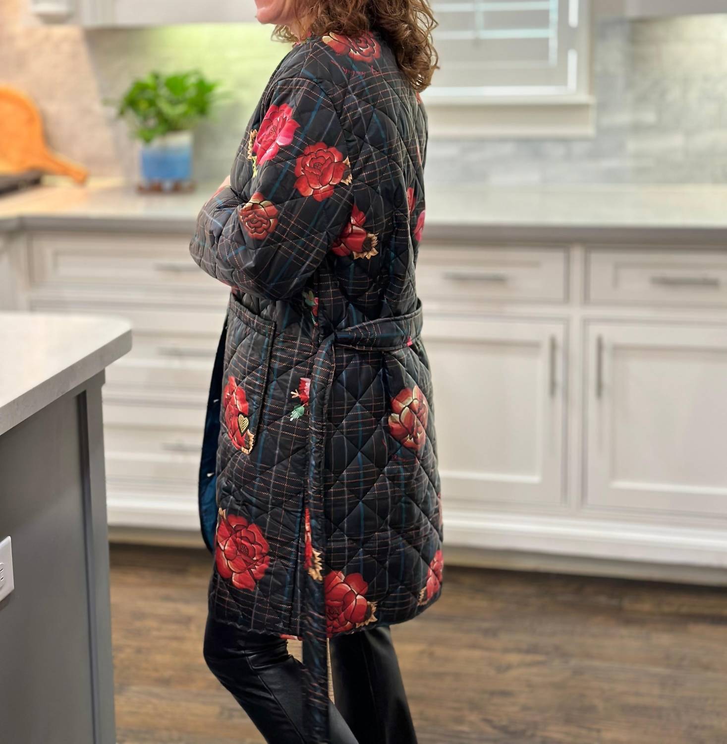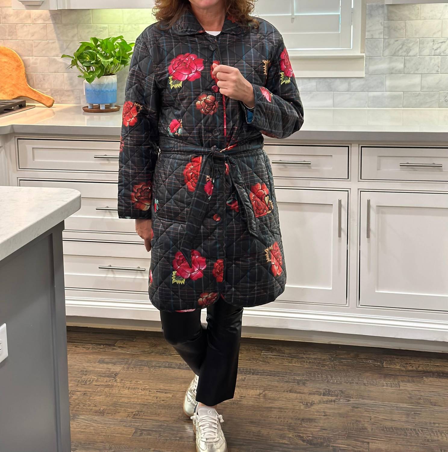 This long-sleeve puffer jacket, crafted entirely from lightweight polyester, serves as an ideal topper for both dressed-up evenings and casual days with sneakers and jeans. The jacket features a classic collar and convenient button closure, along with pockets for practicality. Dry clean only. Model Cathleen is 5'4" and wears a size small.