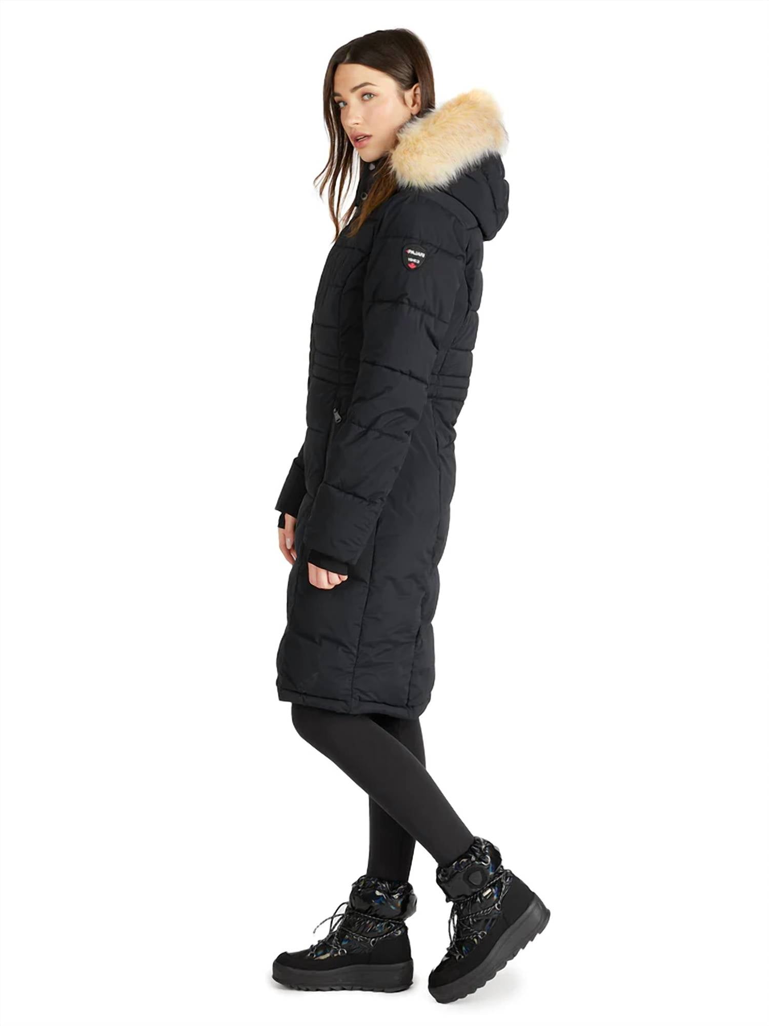 Cozy, cute and timeless. The puffer jacket that will keep you warm all season long. Introducing the Jupiter Puffer Jacket by PAJAR, a must-have for chilly days designed in sleek black. With long sleeves and crafted from a 94% Nylon and 6% Spandex blend, this puffer ensures comfort and mobility with its Flexlux Stretch Shell. The jacket features a removable hood and fur trim, along with an exposed zipper closure and bottom zipper pockets for practical style. Equipped with a 3M Thinsulate Featherless fill, it's equivalent to 700 Fill Power for warmth without the bulk, and is machine washable for convenient care.