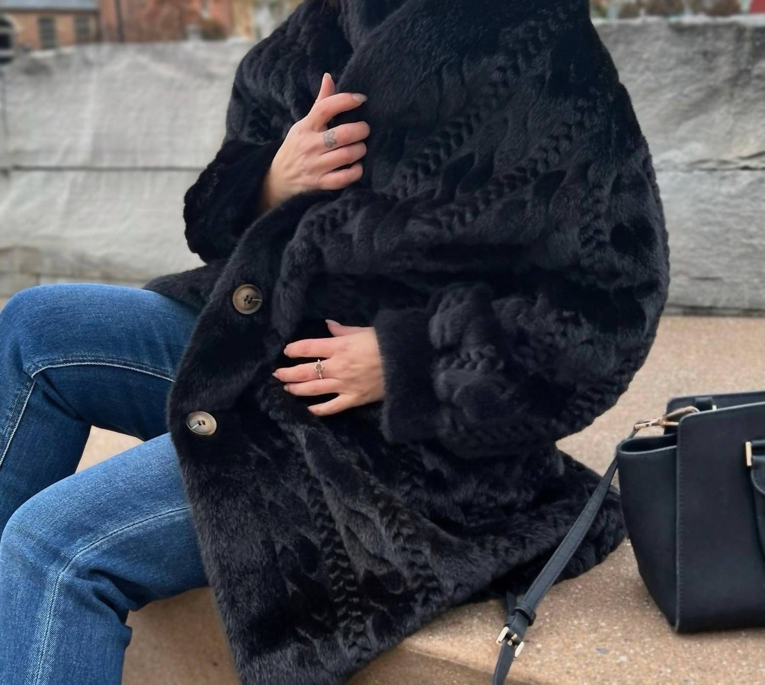 Davi & Dani - Embossed Single Breasted Fur Coat