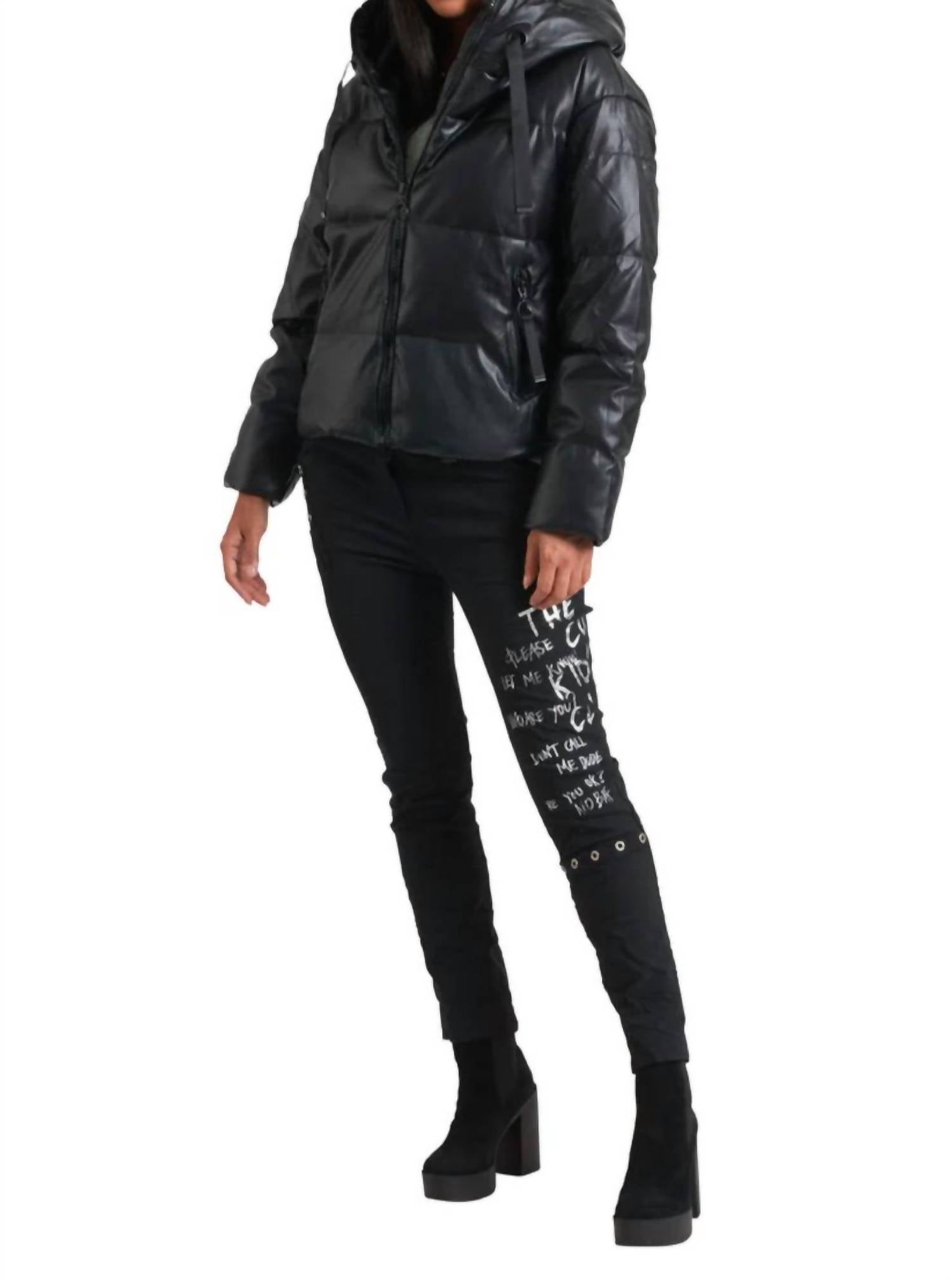 Cooler temps means cute puffer jackets and this one is a fan favorite. Elevate your outerwear collection with the Vegan Jacket by Carre Noir, a chic choice for sustainable fashion lovers. Crafted from 100% Polyurethane, this black puffer features long sleeves and a hooded neckline for added warmth. Its large zipper pockets offer both style and practicality, while the zip closure ensures a snug fit. Lined for extra comfort, it's a solid, dependable piece for any wardrobe.