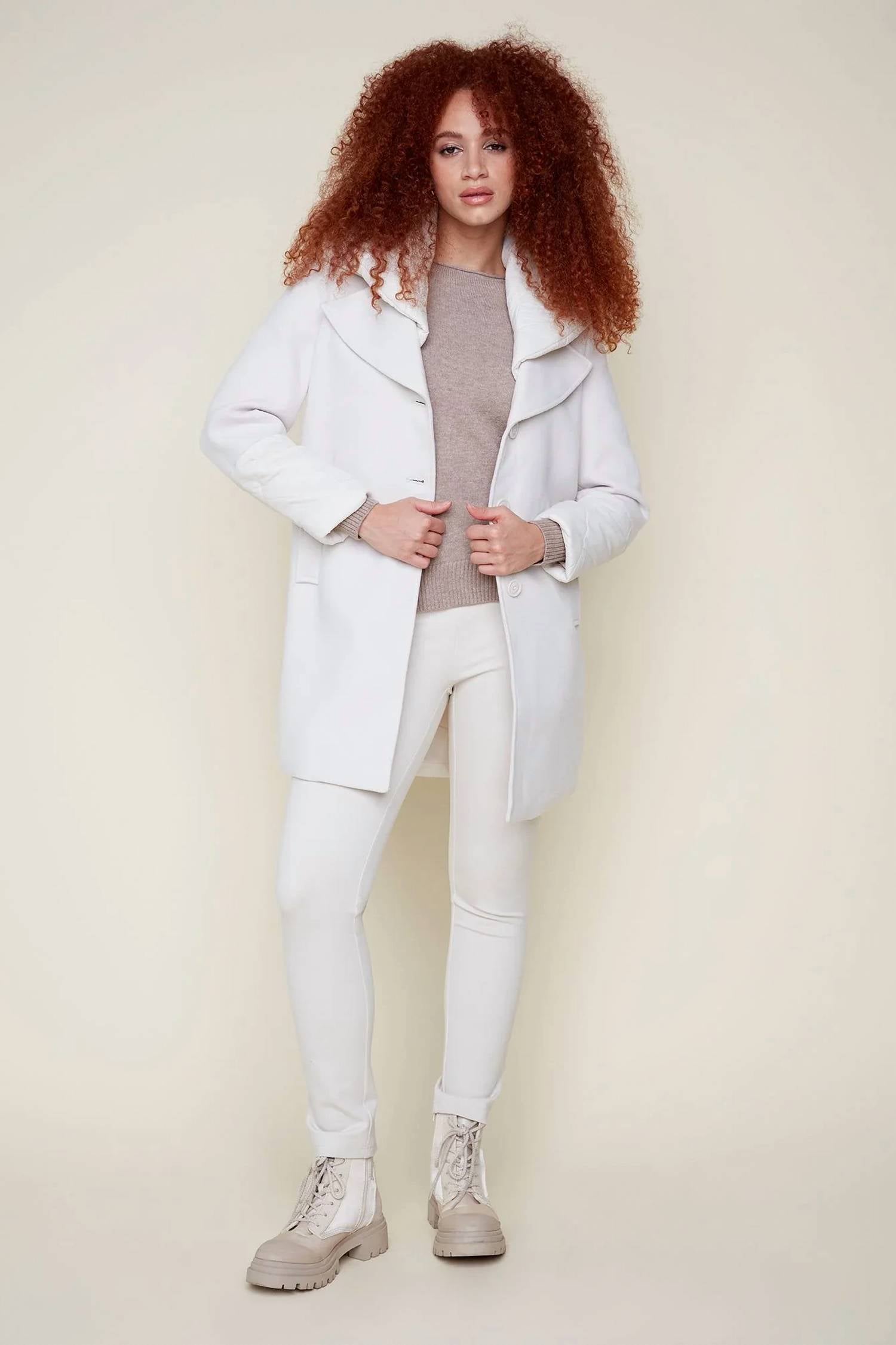 You'll be reaching for this puffer jacket all season long. Embrace winter with the Quilted Woven Jacket by Renuar, designed in a stylish Oyster shade. This women's jacket features long sleeves, whimsical quilted panels, and a puffy quilted collar for added flair. Practical pockets and a solid pattern make it perfect for travel, with a convenient button closure. Its minimalist design complements any Christmas occasion, while its lined interior ensures warmth in the colder season.