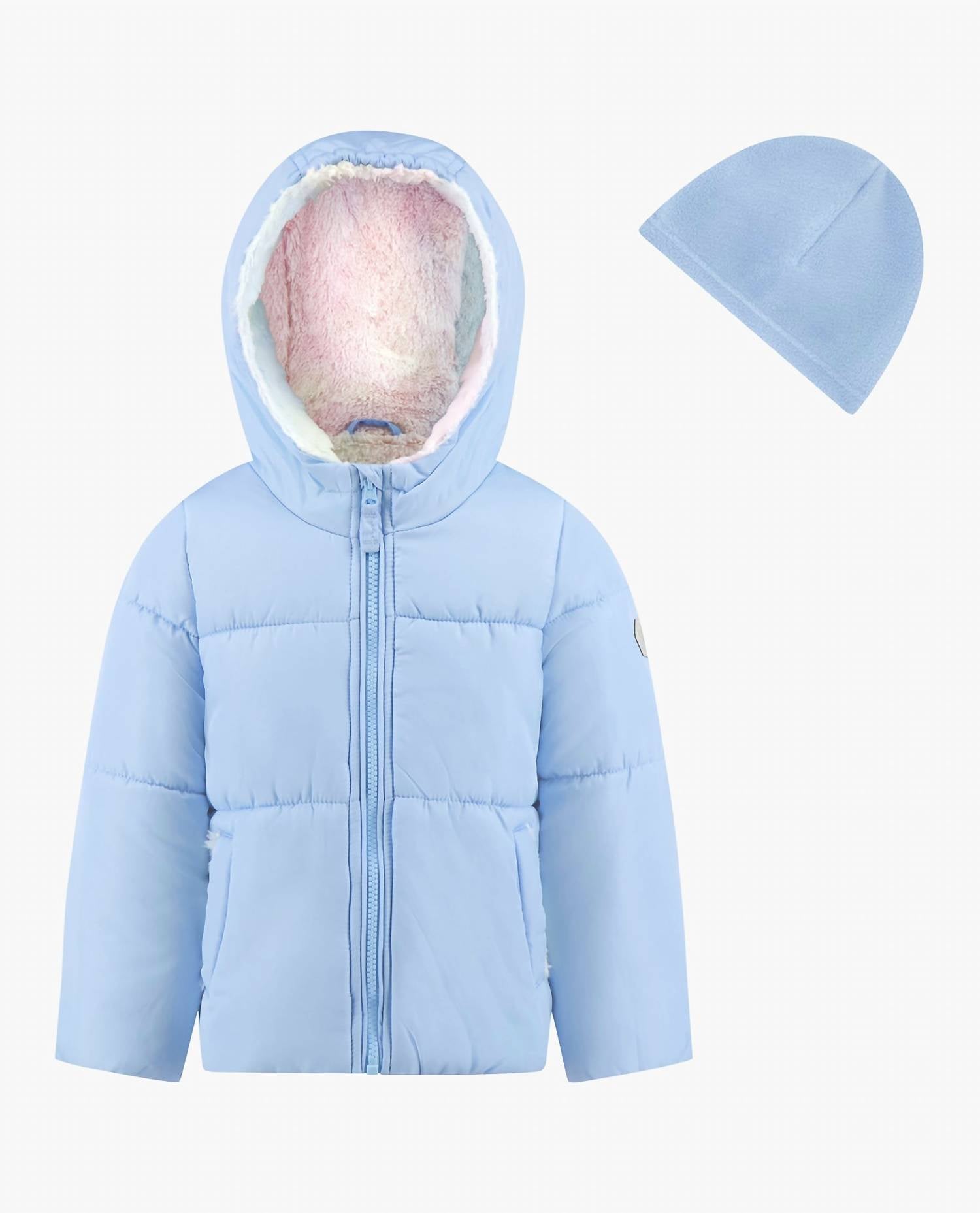 Cooler temps means cute puffer jackets and this one is a fan favorite. Introducing the London Fog Toddler Girls Zip-front Hooded Loose Fit Puffer Jacket in a charming Light Blue, perfect for keeping your little one cozy during cold days. This winter-ready puffer boasts long sleeves and a fleece-lined hood for added warmth, with a practical zip closure for a snug fit. Crafted from durable 100% polyester, it features two front pockets and includes a matching fleece beanie. Care is made easy with machine washability, ensuring this solid pattern piece stays stylish all season long.