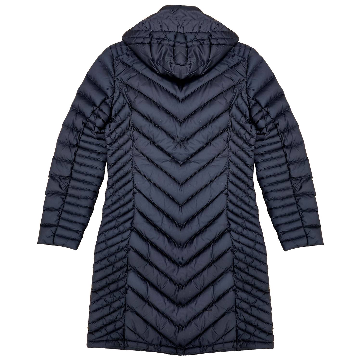 Double Layered Zipper.  3/4 Hooded. Chevron Quilting. Down Fill.